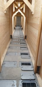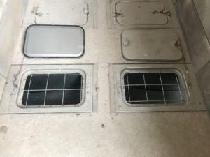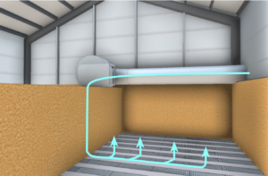 På de fleste anlegg leverer vi støpekasser som ferdige luftkanaler med kjørbare rister oppå. Her kan man velge perforering for korn eller grasfrø. Videre er det integrerte lukkespjeld i hovedkanalen med ledeplate for luft ut i hver tørke-/sidekanal. Spjeldet er meget forseggjort med pakning og god låsing, noe som gjør at kun de luker som åpnes får luftstrøm. Man kan derfor tilføre luft og tørke kun de områder der det er behov.