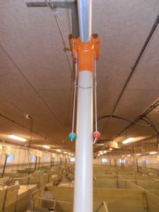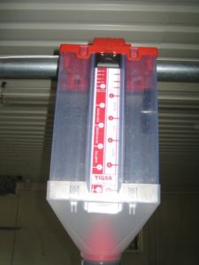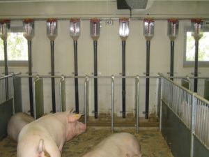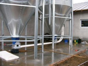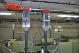 Til fylling av alle typer fôrautomater, benytter vi utløp med skyvespjeld. Dette kan leveres med teleskopisk fallrør. Volumdoserer brukes til purker, og er en gjennomsiktig beholder på 6, 10 og 15 liter. Dosereren har stor sideluke for rengjøring.