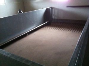 Produktet legges i 2-3mm tykkelse, og gir en sandbrun farge i bingen. Gulvet blir lett vaskbart og svært slitesterkt.