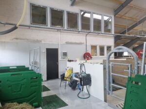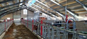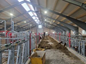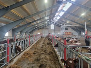 Vi leverte Lely A5 melkerobot, Lely Discovery skraperobot, Lely Calm kalvedrikkeautomat, Lely Luna kubørste, Jourdain innredning, Big Dutchman ventilasjon, Easyfix Jupiter F liggebåsmatter, Kraiburg Calma liggebåsmatter, Agrilight Led belysning og Suding spalter. Bygget er levert av Fjøssystemer Bygg og oppført i stålkonstruksjon med 140 mm laftevegger. Sandwich-tak med lysmøne.