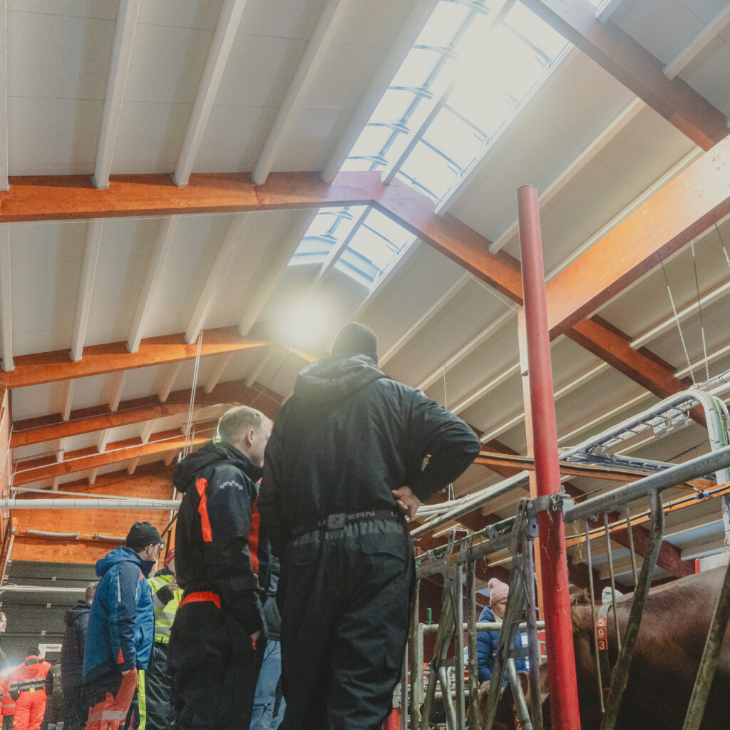 Det som først møter deg på Rekkedal, er atmosfæren. Fjøset er bygd i ein solid trekonstruksjon med vegger i massivtre. Dette materialvalet gjev ikkje berre eit vakkert bygg som glir naturleg inn i det sunnmørske landskapet, men det bidreg også til eit lunt og stabilt inneklima for dyra.