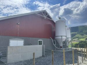 Det nye fjøset er en komplett leveranse fra Fjøssystemer Gruppen. Steinar Myhre AS leverte bygget og Fjøssystemer Øst all innendørsmekanisering. Med en kapasitet for ca. 300 tonn melk, og potensial for å øke til 400 tonn, representerer det en betydelig investering for fremtiden. Bygget er levert etter kundens ønske, og er et lettdrevet og komfortabelt fjøs både for folk og dyr.