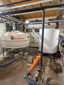 Vi har levert Big Dutchman restløs våtfôring med etetidstyring. Anlegget leverer fersk våtfôr i nøyaktige oppveide posisjoner som mengdereguleres etter grisens matlyst.