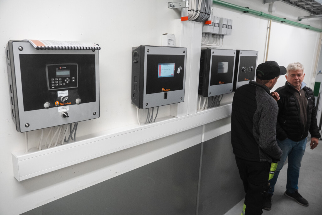 For å sikre en oversiktlig og profesjonell installasjon av styringssystemene, er det valgt ikke-bærende lettvegger i betong i gangarealene utenfor de to FT-30 avdelingene. Dette forenkler monteringen av tørrfôringsstyreskap, kabeltrekk og teknisk utstyr betraktelig, samtidig som det gir en ryddig og lettstelt installasjon for bonden.