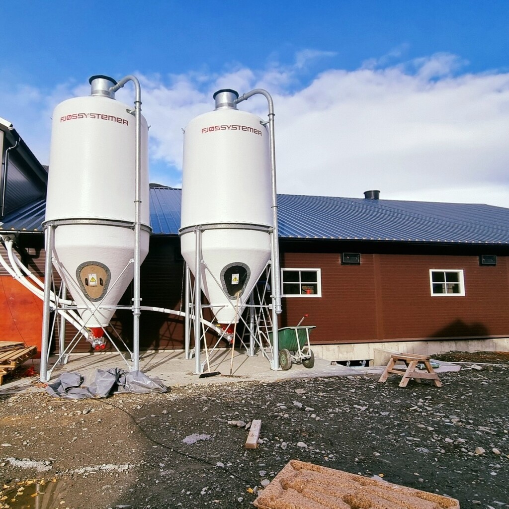 • Fôrlagring: To kraftfôrsiloar frå Furab sikrar trygg lagring og enkel logistikk.