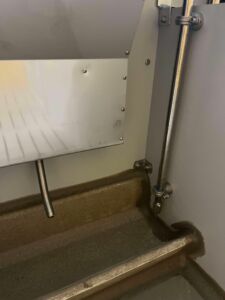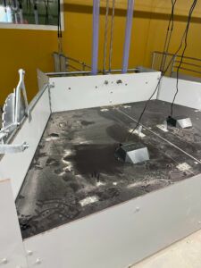 Inventaret er i Fiber-materiale. Rustfritt mot gulv og galvanisert i topp.