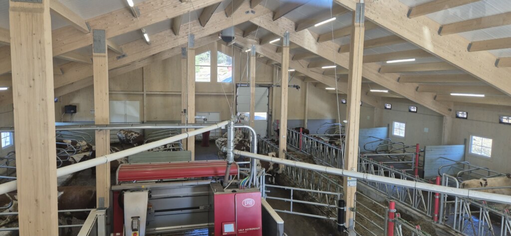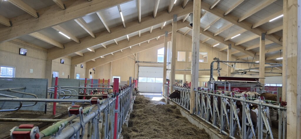 Bygget, som er levert av Gardsbygg, er oppført i massivtre – et materialvalg som gir et godt inneklima og en estetisk flott driftsbygning. Fjøssystemer Sør har hatt ansvaret for planlegging og totalleveranse av i-mek, i et prosjekt som er dimensjonert for 24 melkekyr pluss ungdyr og kalv.