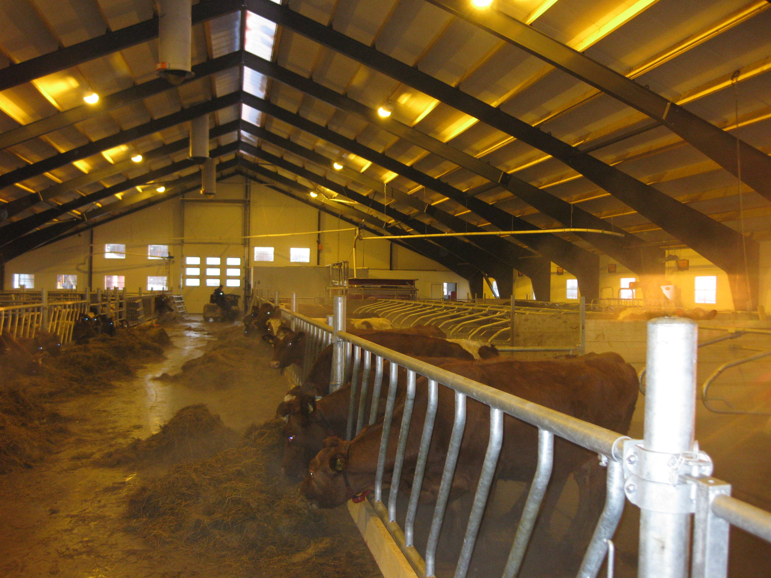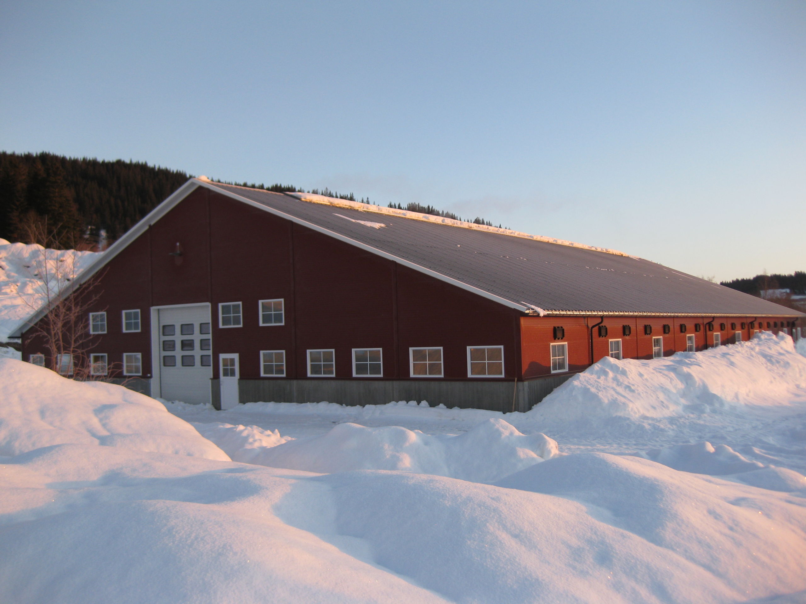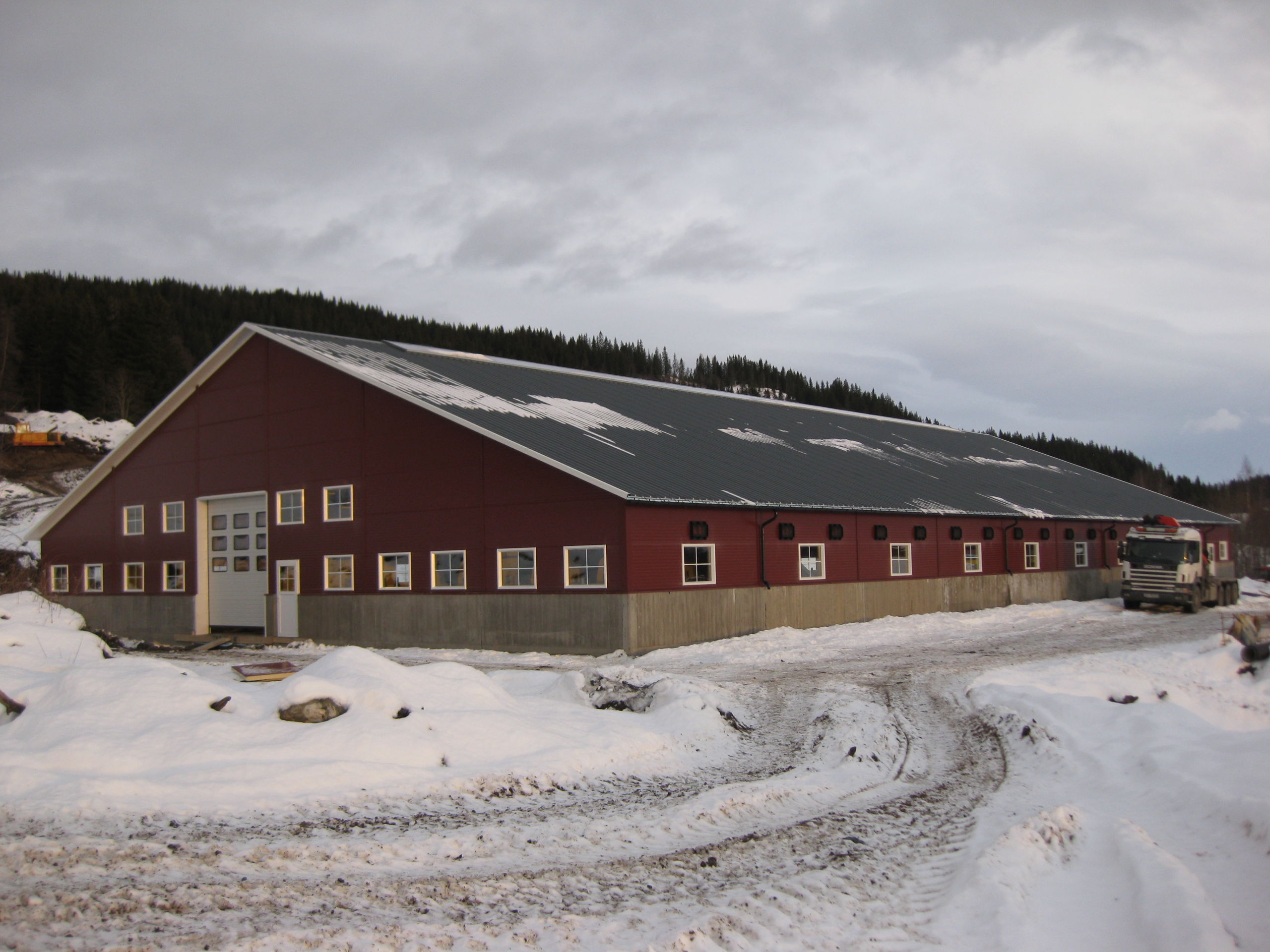 Dette er er frittstående nybygg for melkeku med fullt påsett. Fjøset er 48×27 meter, og er i stålkonstruksjon med isolerte betongelementer og sandwich i vegg samt sandwichpaneler på taket.