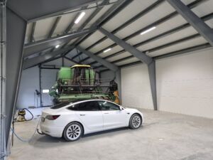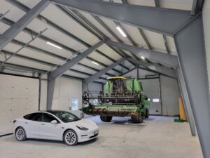Frittstående isolert lagerbygg på 10m x 20m, bærekonstruksjon av stålrammer, isolerte sandwich paneler på vegg og tak. Vi gratulerer kunden med et flott lagerbygg, og takker for oppdraget.