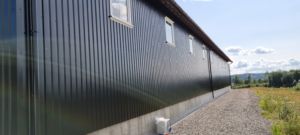Fjøssystemer har levert og montert støpekassetter i stål, kjørbare rister, spjeld i hovedkanal og en sentrifugalvifte på 22kw.Bygget er på 588 m2 og er 14 x 42 m. Vegghøyden er 5 meter. Bygget består av reisverk vegger og takstoler med skrå undergurt. Utvendig er det kledd med stålplater. Det er lagt inn mange lufteluker for ventilering av bygget.