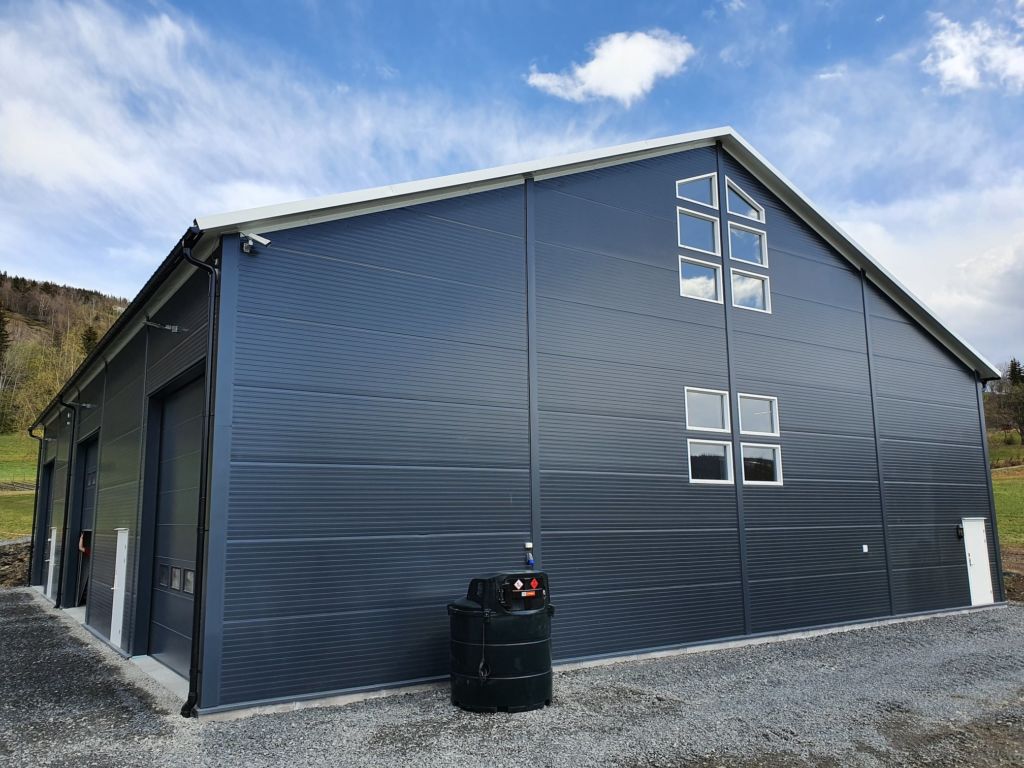 Da har vi ferdigstilt et nytt lagerbygg til Erik Martin Berge i Røn. Et isolert bygg med stålrammer som bærekonstruksjon og sandwichelementer på vegg og tak.