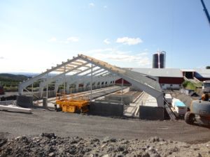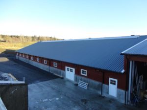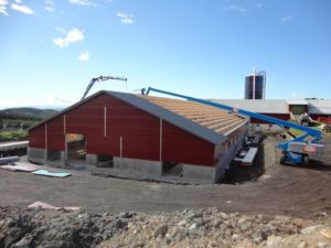 Det nye fjøset har stål som bærekonstruksjon. Veggene har betongbrystning og sandwichpaneler, og på taket er det sandwich.