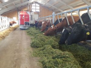 i tillegg til 9 kyr i velferdsavdeling, 6 sinkyr og 26 kvigeplasser. I fjøset finnes Lely A4 melkerobot, Lely Discovery skraperobot, Lely Meteor klovspyling og Lely Vector med fast dobbel rail. Innredningen er fra Jourdain, spalter fra Suding og gummimatter fra Kraiburg. Fjøset har også Agrilight LED lysprogram og kanalomrøring fra Landia.