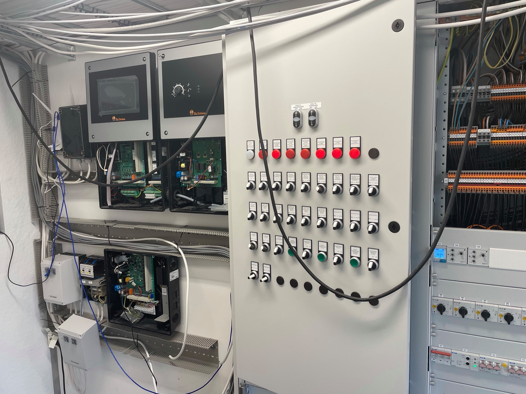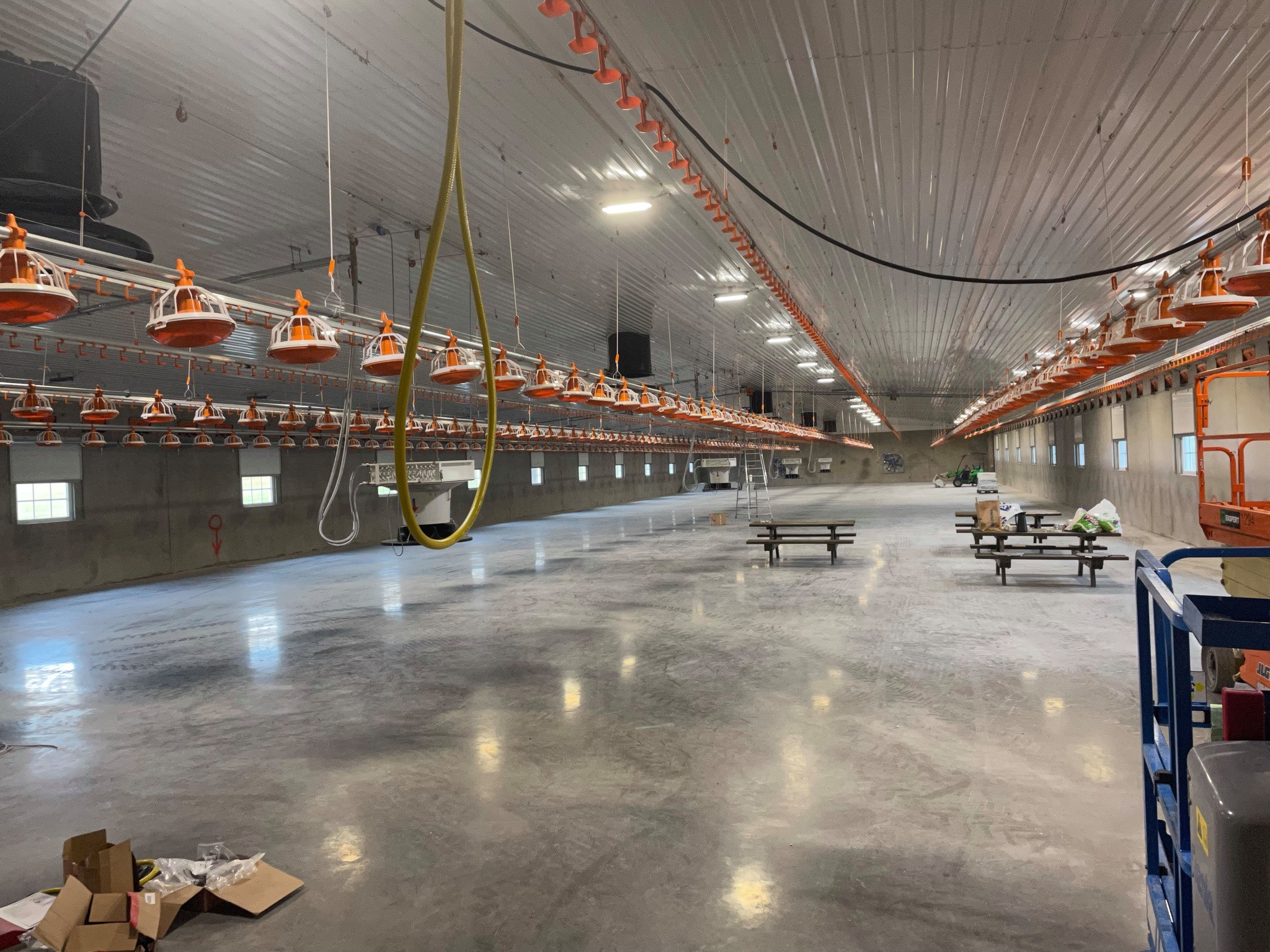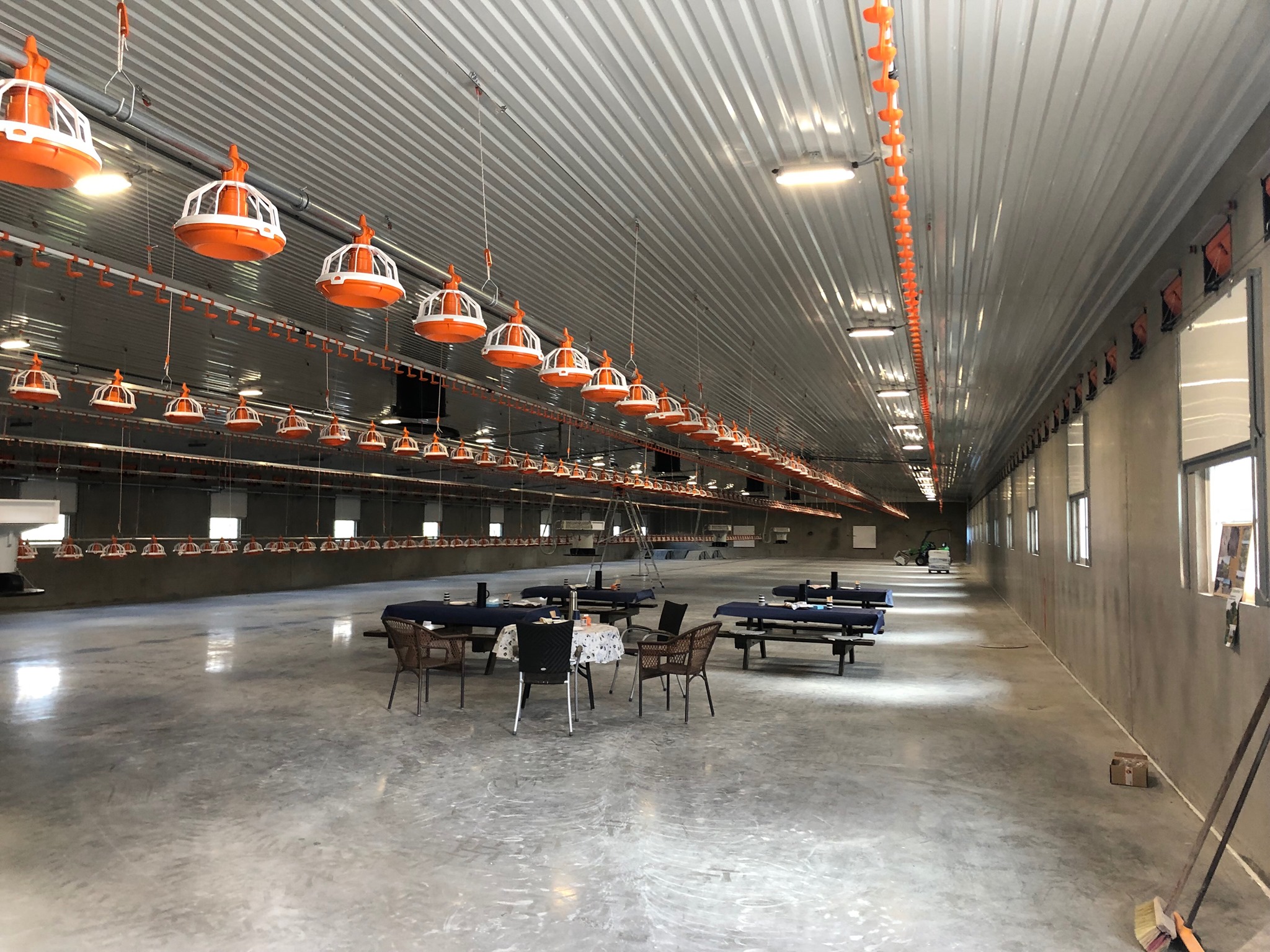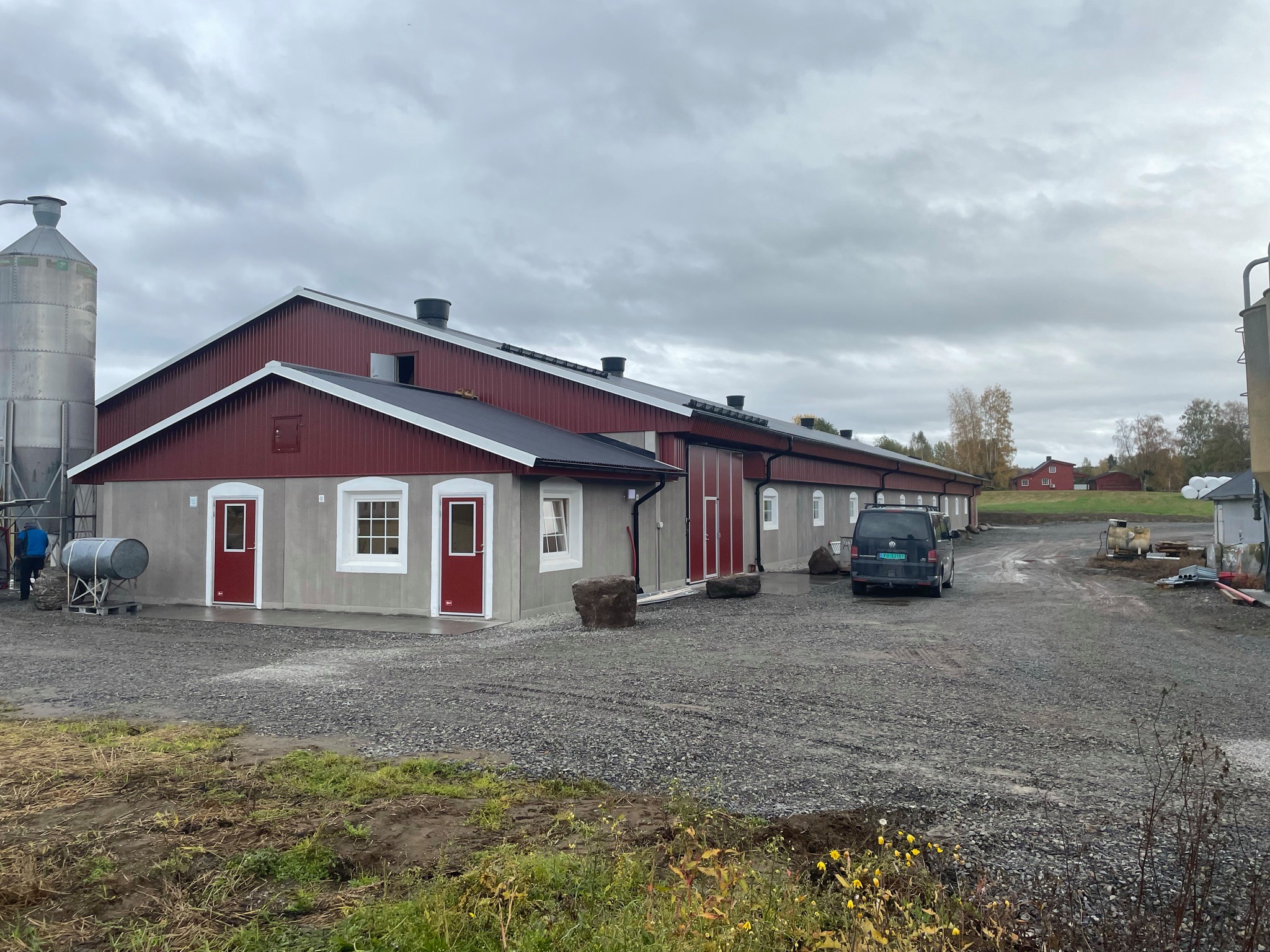 Dyrerommet er i størrelsen 20x70m Fjøssystemer har levert styring, alarm, nødopplukk, ventilasjon, varmekonvektorer, fôringsanlegg, drikkerekker, lys, solskjerming til vinduene, alt fra Big Dutchman.