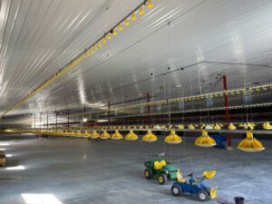 Hege Alice Gjerberg og Anders Degnes har bygd nytt hus til slaktekylling. Dyrerommet er på 30x90m. Vi har levert ventilasjon til dette prosjektet.