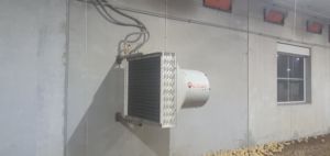 Veggventilasjon, befuktningsanlegg, varmevifter for vannbåren varme, styringssystem for romvarme/gulvvarme, Earny varmegjenvinner, Augermatic skålforing med Fluxx 330 skåler, drikkenippelrekker, Zeus taklamper med fullspekter dagslys, Viper Touch styringscomputer med klimafølere, alarm og nødopplukk, dyrevekt og fôrvekt med fleksiskruer. Alt fra Big Dutchman.