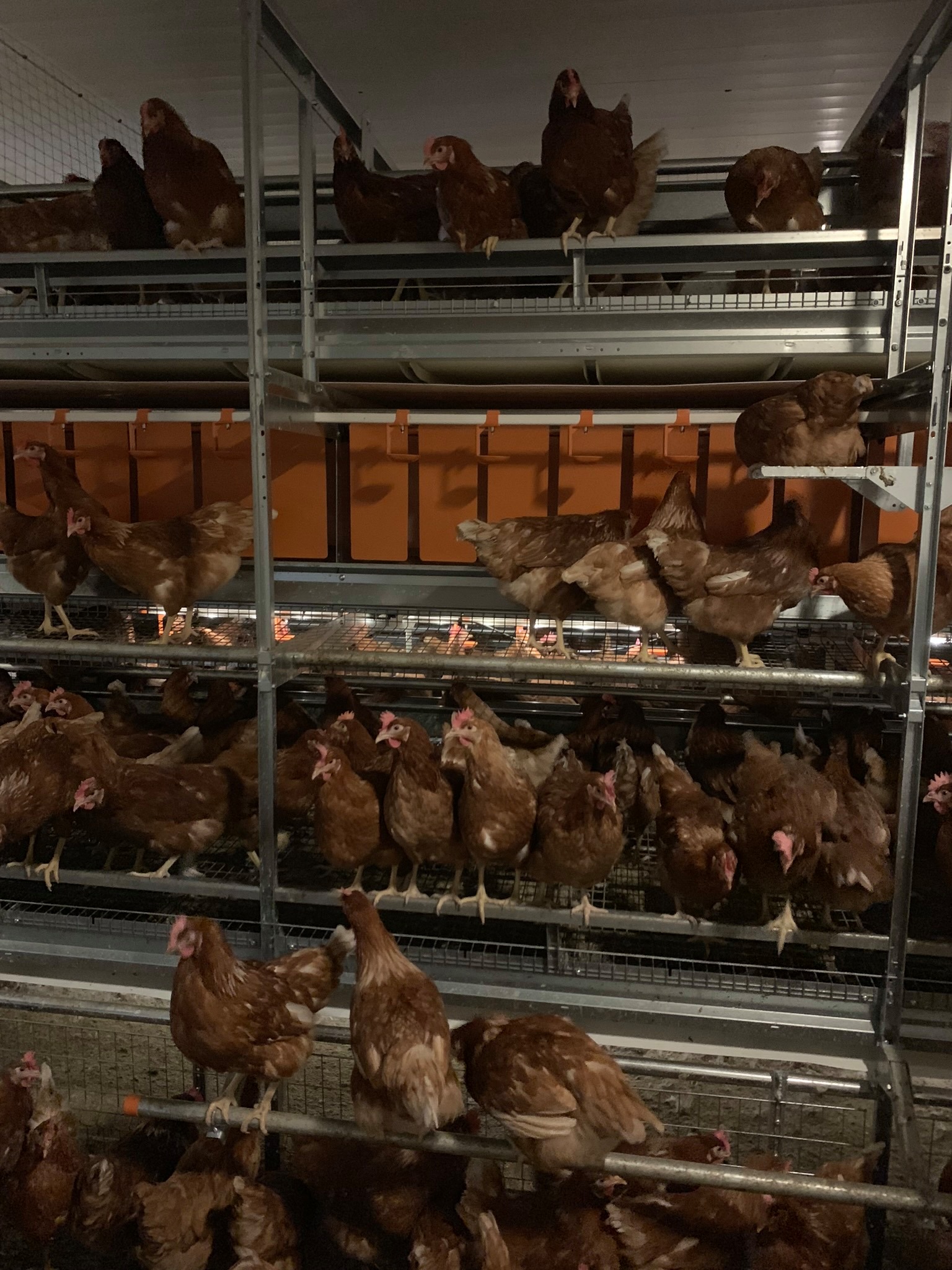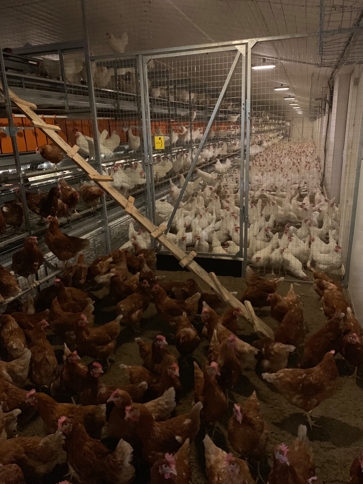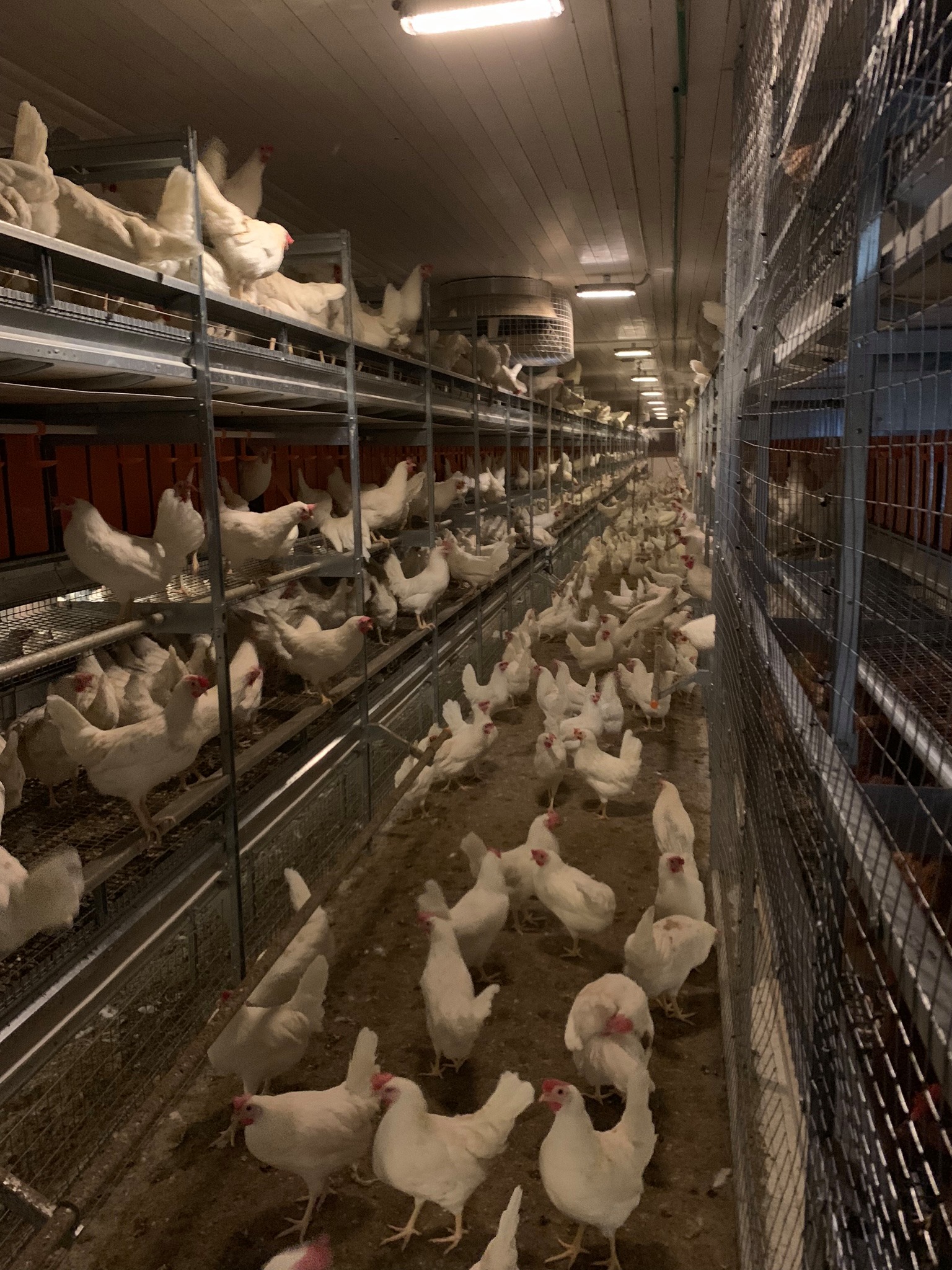 Her er det satt inn 2 rekker med aviar av typen Step 24-21, med ekstra fôringsrenne på toppen av innredningen.
