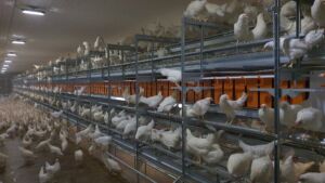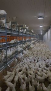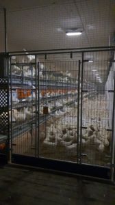 Eksisterende miljøbur ble demontert og nytt Natura Step aviarsystem fra Big Dutchman ble montert i juli.