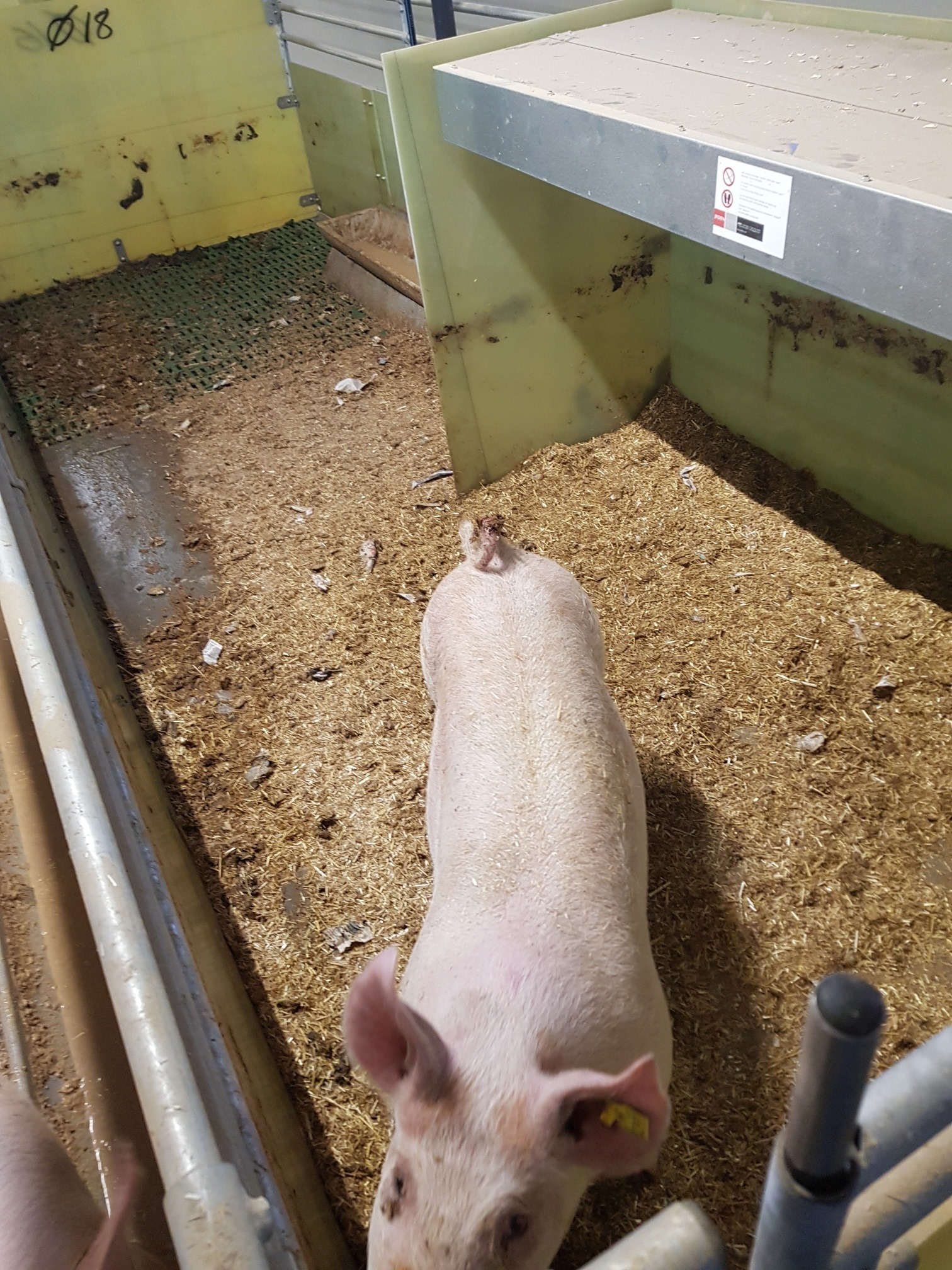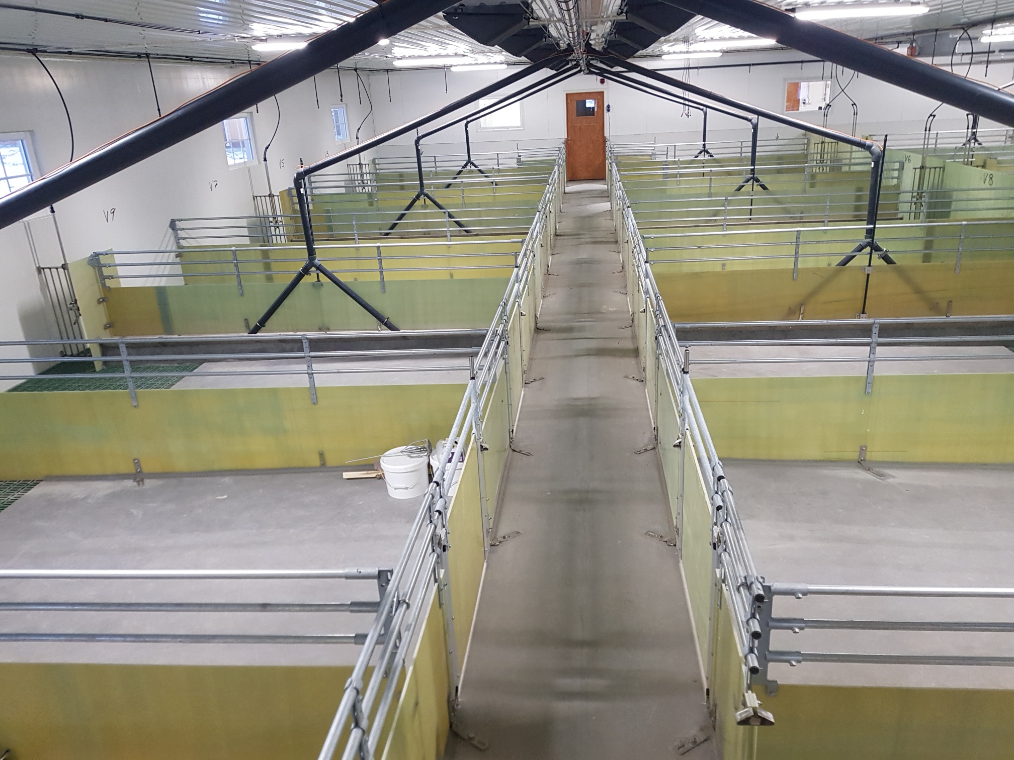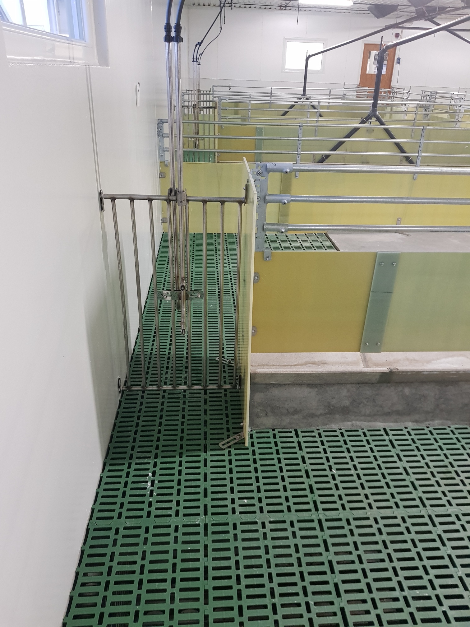 Størrelse på bygget er 21,2 x 47,6 m (1010 m2). Av dette utgjør «grishusdel» 900 m2. To avdelinger à 330 plasser (1,15 m2 pr gris) + to sykebinger m/2-klimatak pr avdeling.