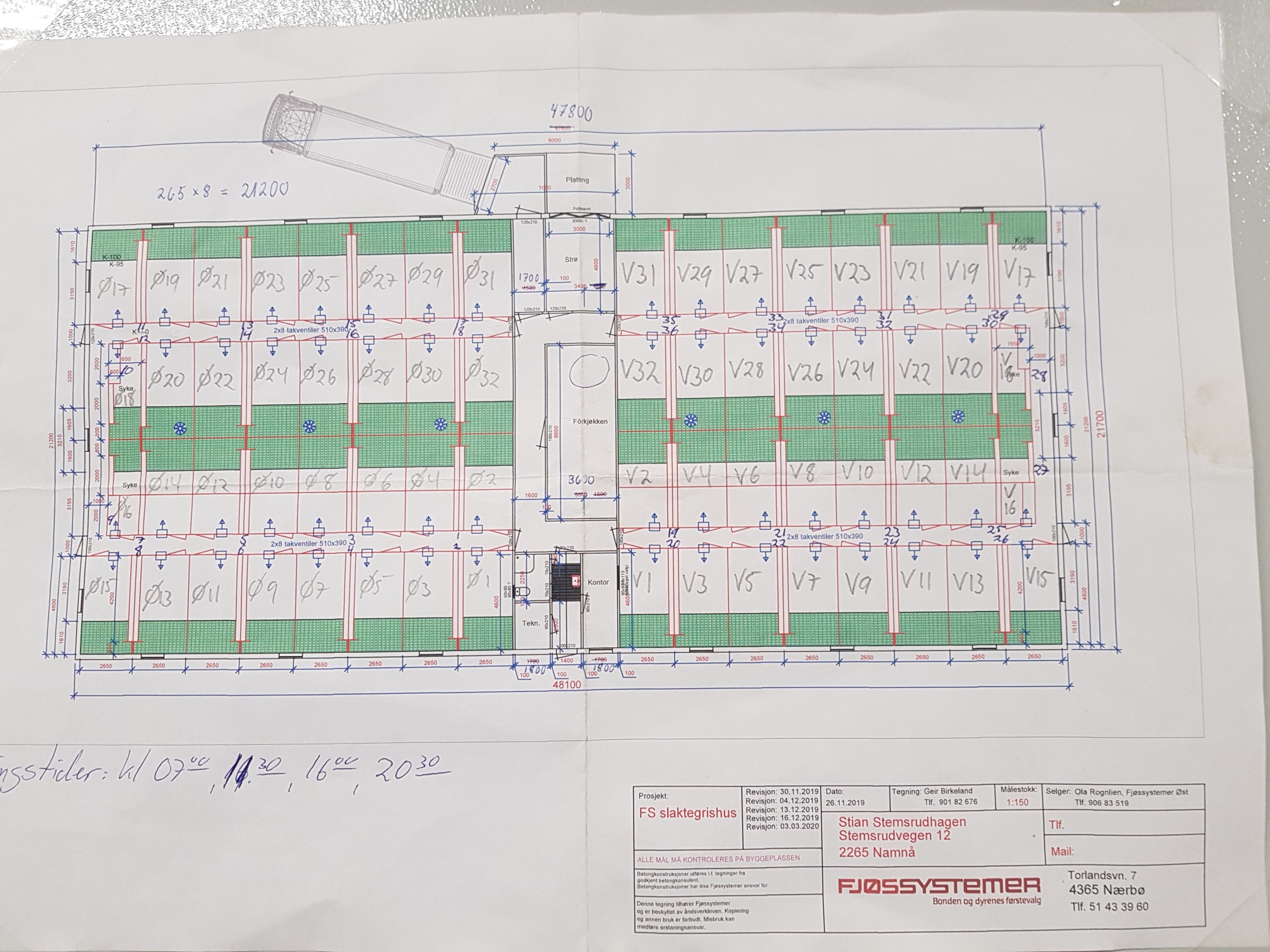 Hos Stian Stemsrudhagen på Namnå i Solør har vi levert komplett i-mek til nytt slaktegrishus.