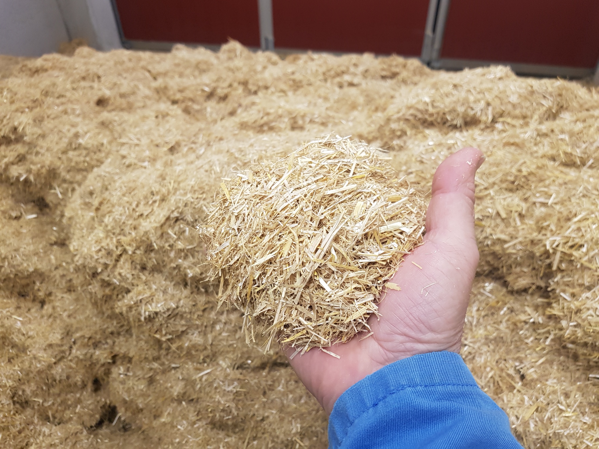 Stian benytter oppmalt halm som hoved-strømiddel (halmmølle/traktordrevet)