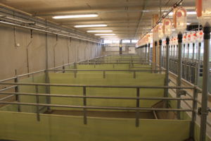 På Ås har vi levert innredning til grisehuset. Det består av utlastingsrom, mottaksavdeling, 2stk fødeavdelinger, slaktegrisavdeling med mulighet for individuell fôring, bedekningsavdeling inkludert ungpurker og råner binger og en smågrisavdeling. Alt inventar er levert i Glassfiber fra Jyden. Utover innredning har vi levert tørrfôringsanlegg fra Big Dutchman, kraftfôrsiloer bestående av 3stk glassfiber siloer ute og 4stk BM siloer inne. Videre har vi levert betongspalt, vakuum utgjødslingsanlegg, hydraulikk gjødselskraper fra LR- system, Landia gjødselpumper og gjødselpropeller.