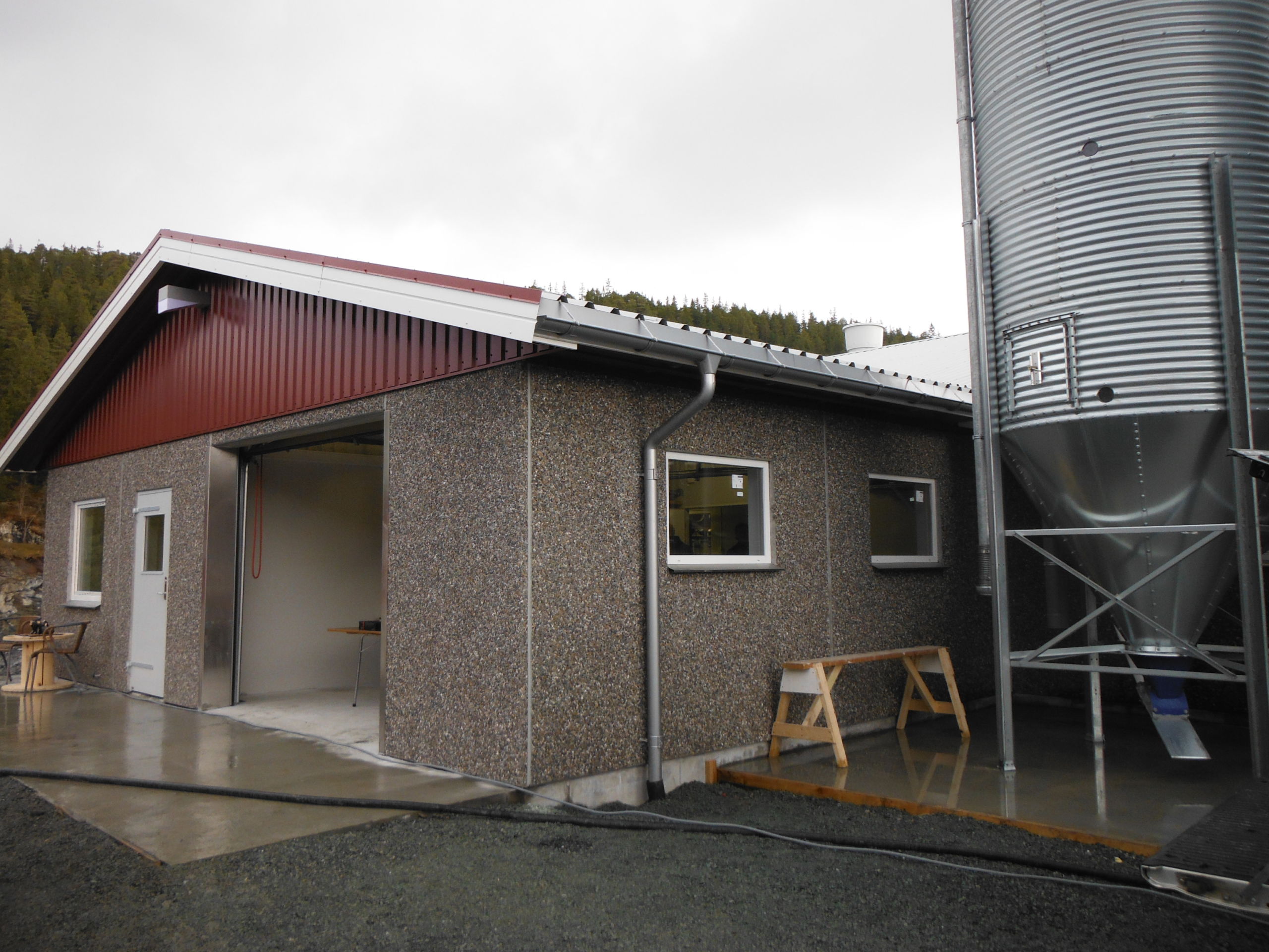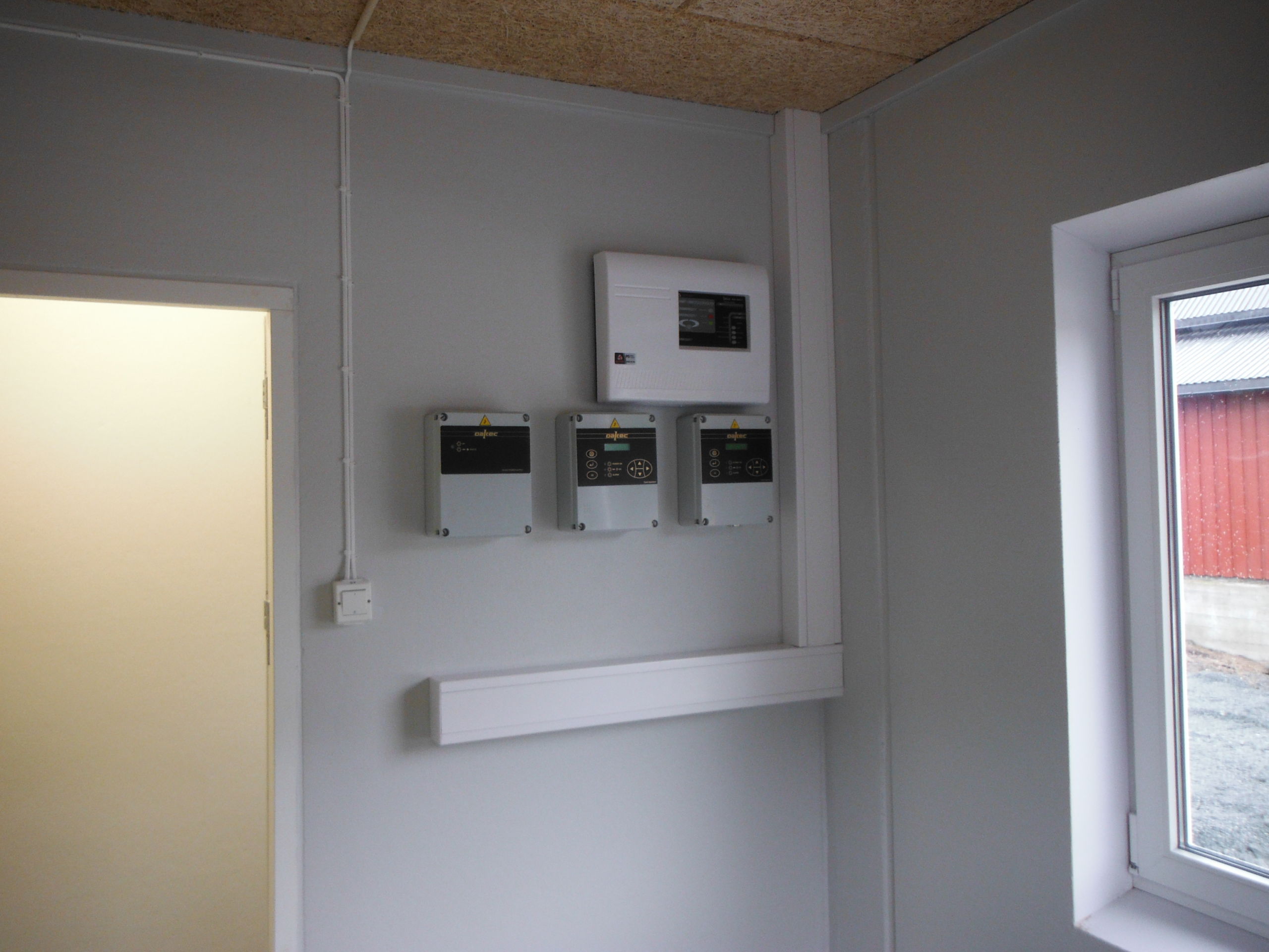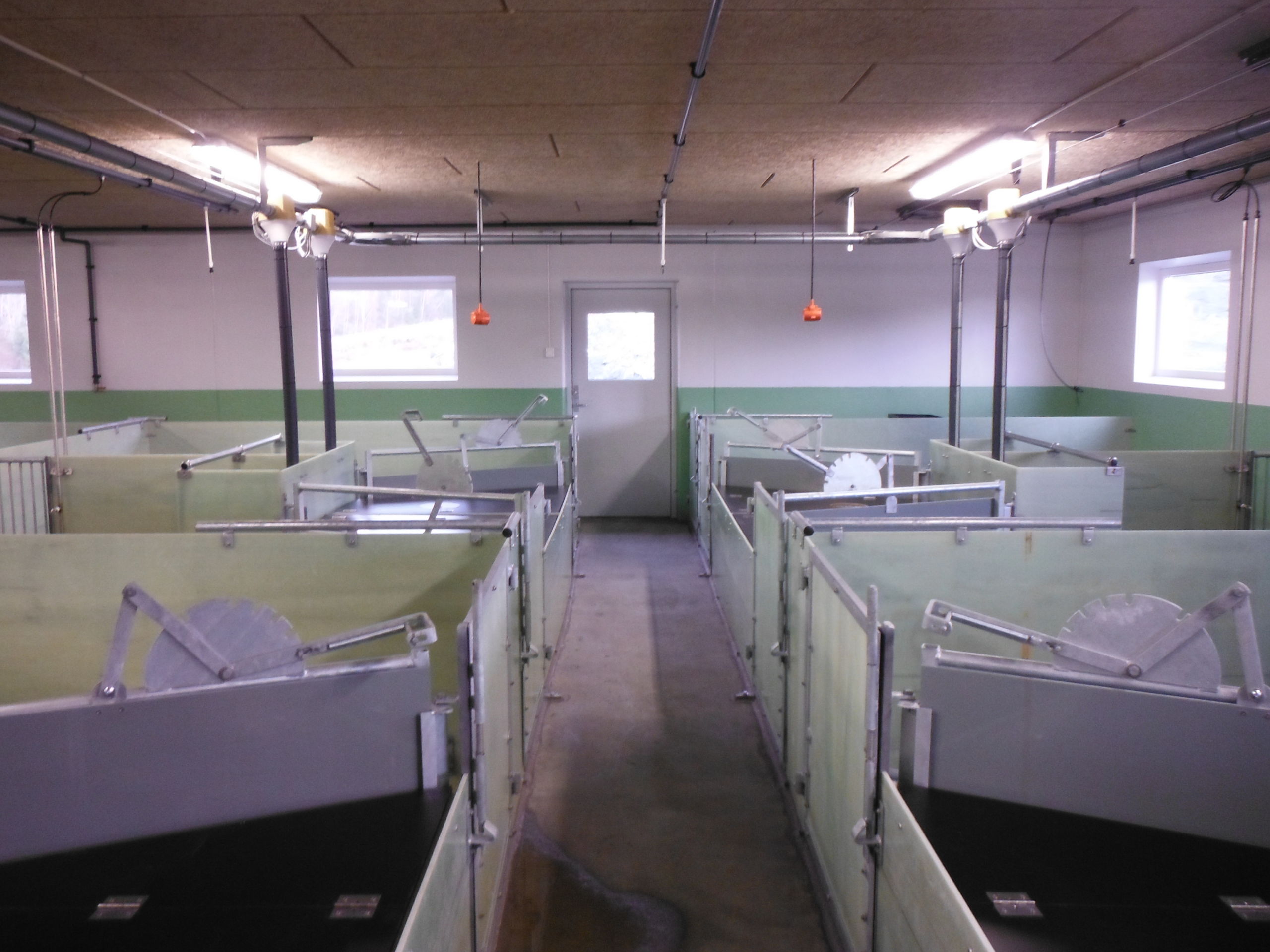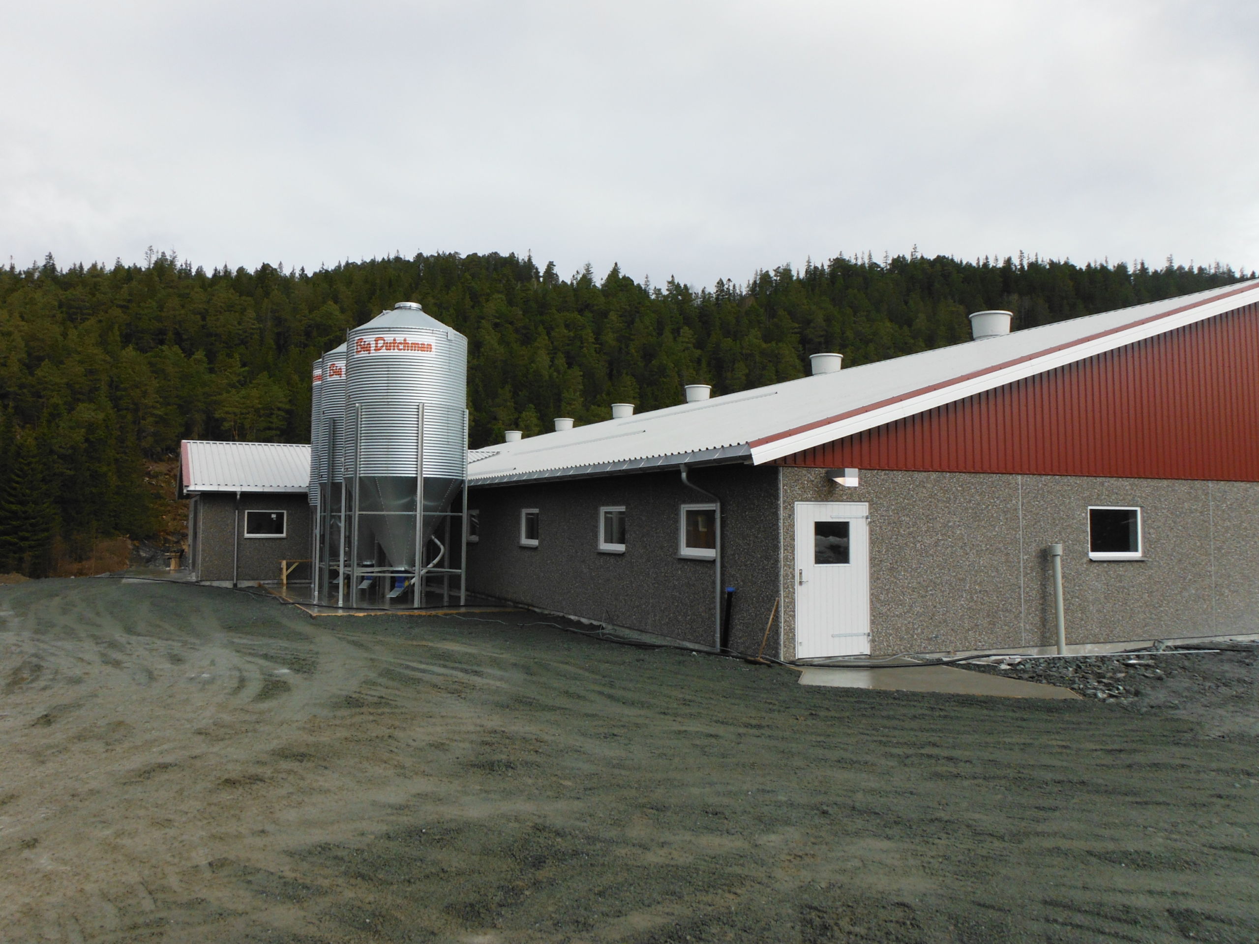 Det er glassfiberinventar i alle avdelinger, Big Dutchman ventilasjon og kraftfôrsiloer samt tørrfôringsanlegg fra Daltec. Alt levert av Fjøssystemer Midt Norge.