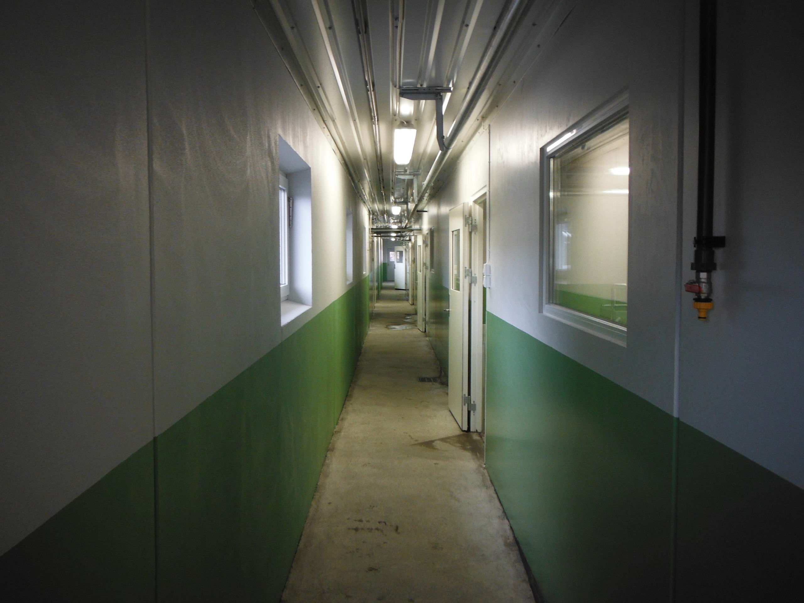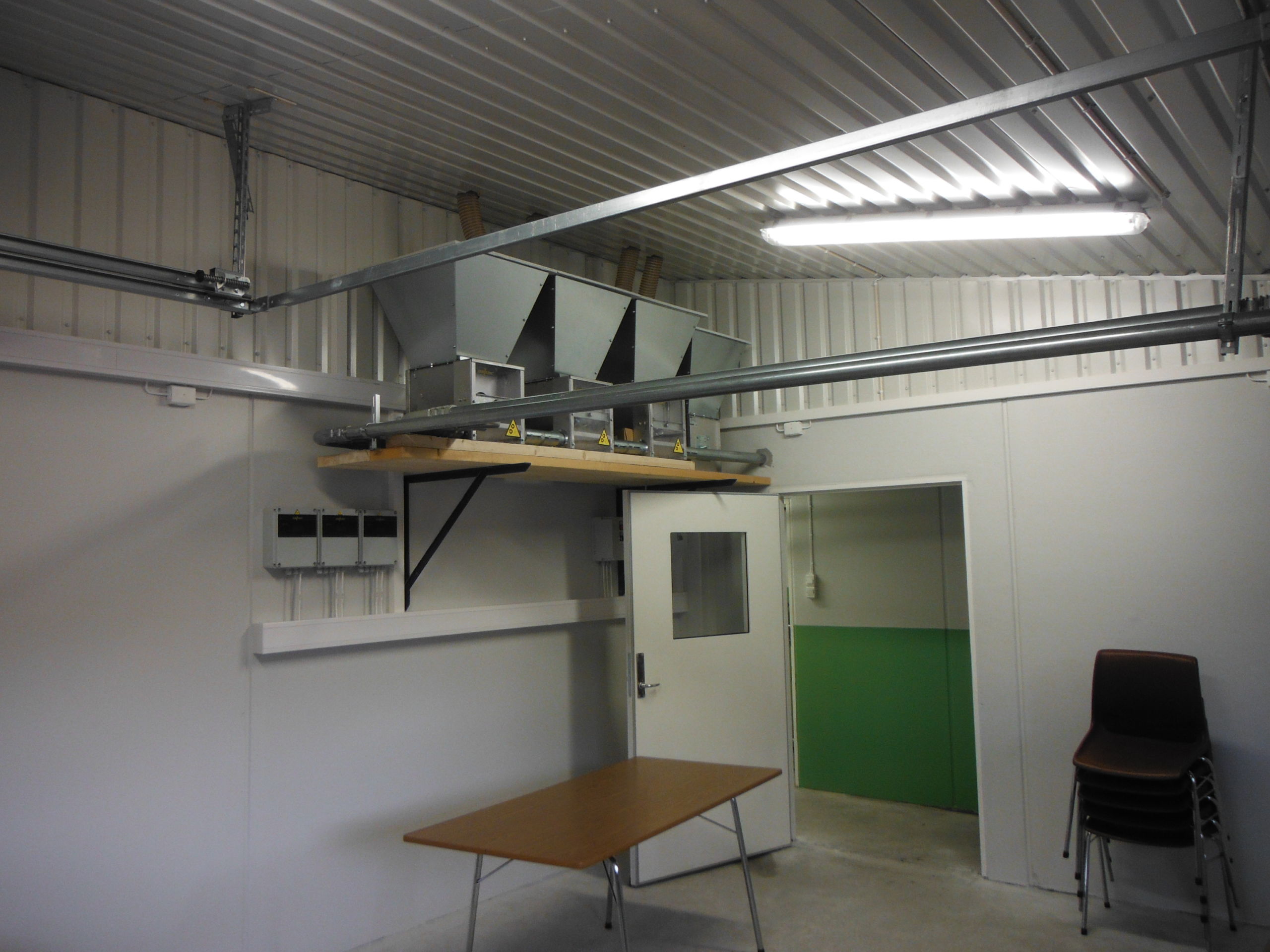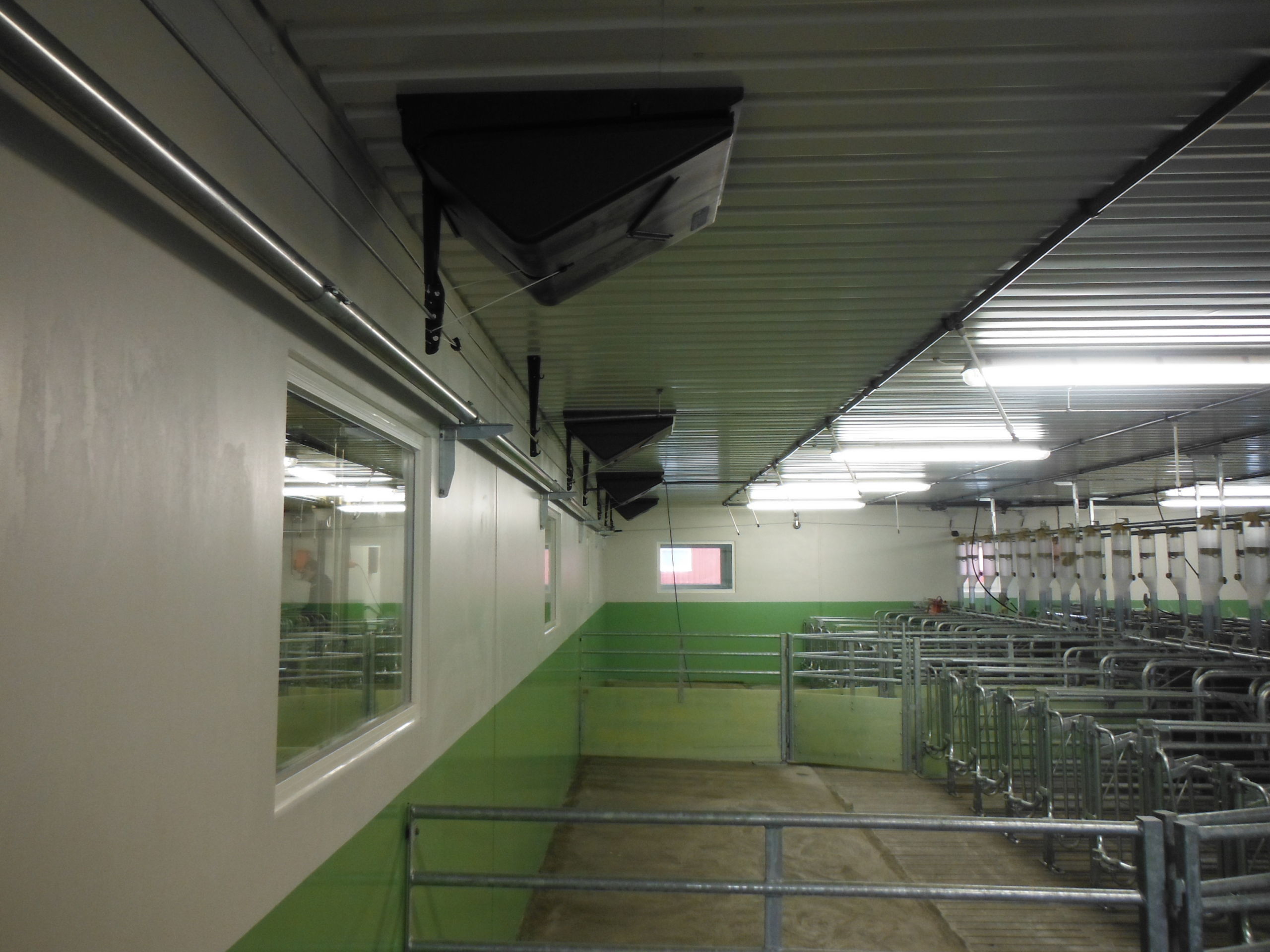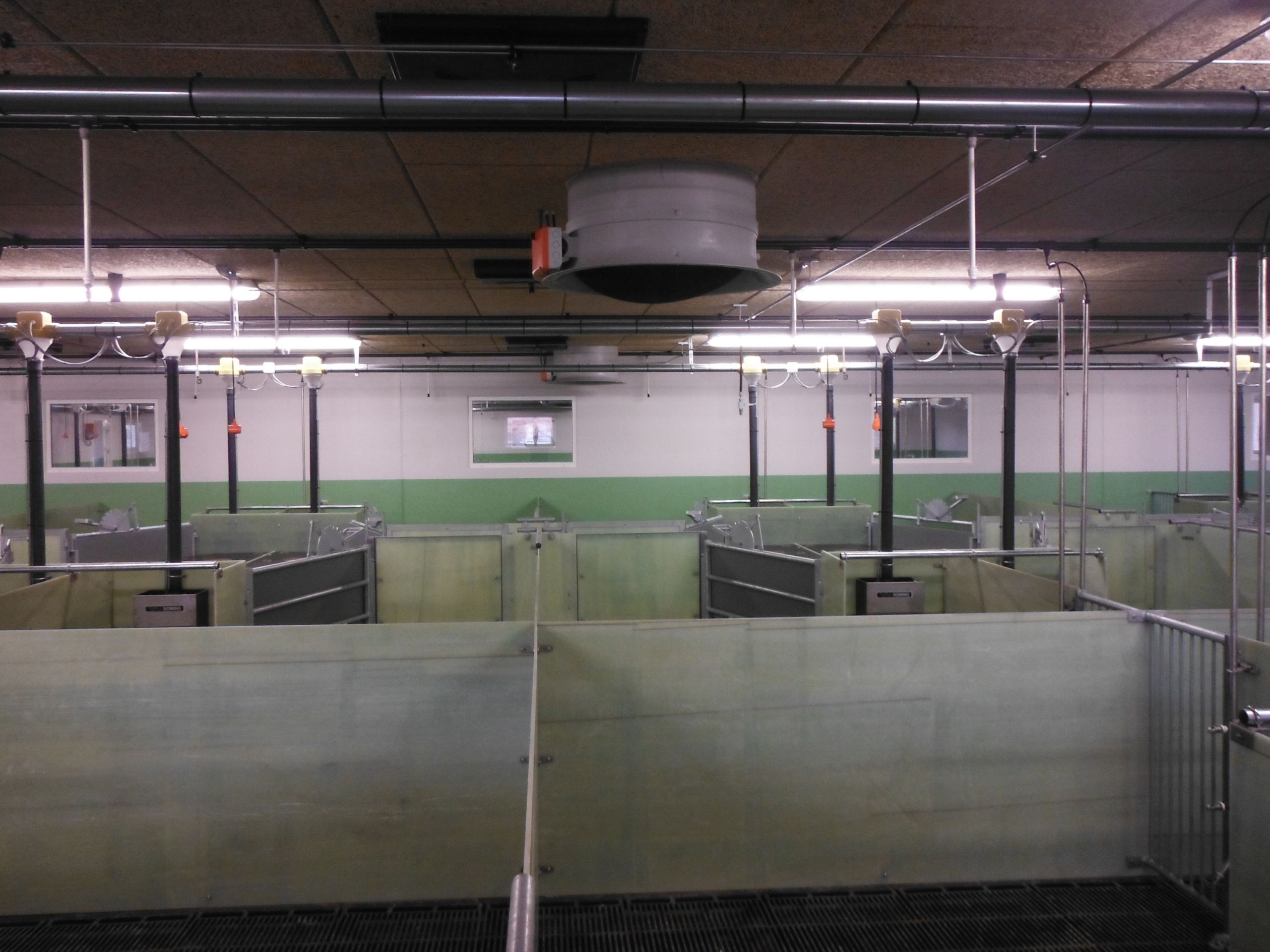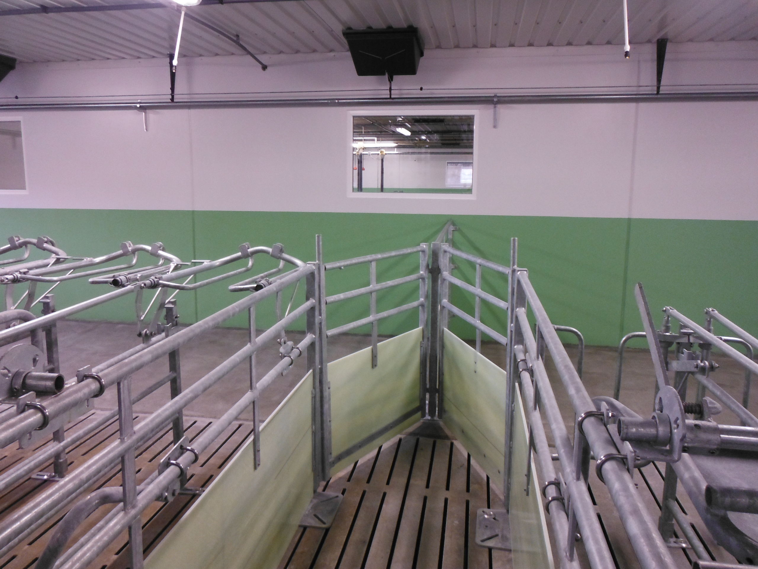 Det er glassfiberinventar i alle avdelinger, Big Dutchman ventilasjon og kraftfôrsiloer samt tørrfôringsanlegg fra Daltec. Alt levert av Fjøssystemer Midt Norge.