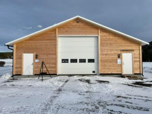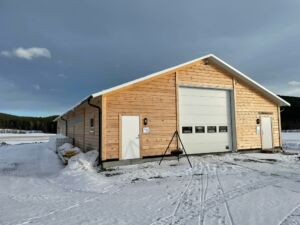 Bygget er satt opp med stålbuer, laftet vegg og isolert tak i sandwich. Mål på bygget er 12m bredt, 28m langt og har plass til ca 120 Kashmirgeit.