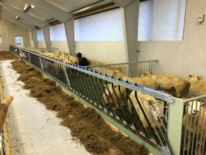 Fjøset er planlagt for ca 200 vinterfôra sau. Vi har levert ventilasjon, MIK Stepper plastrister, lammesikre fronter og vannopplegg fra Suevia.