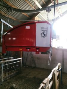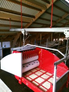 Ca. 240 sau skal fôres med hjelp av en opphengt FlexiFeed fra Serigstad. Rundballekutteren går på en skinne over fôrbrettet. Denne løsningen er en smart, enkel og rasjonell løsning i denne type fjøs. Vi ønsker lykke til!