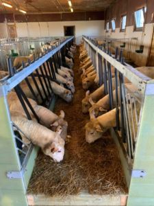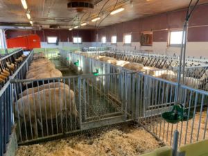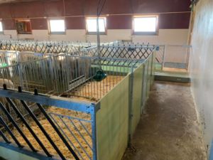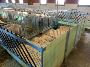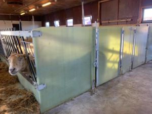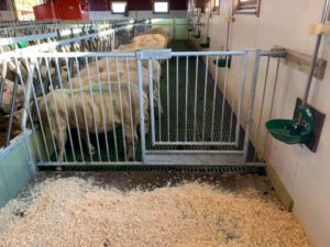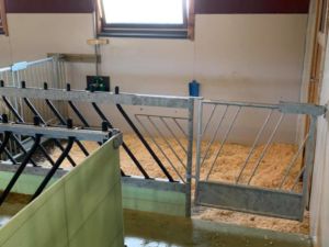 Betonggulv er fjernet og inn kom MIK Stepper plastrister med galvanisert stålbæring. Videre er det bygd forbrett med glassfiberplate i bunn noe som gir et hygienisk forbrett. Lammesikker front, og skiller med både glassfiber og stående spiler. Porter er plassert for enkel og grei logistikk både for dyr og røkter. I og med det ikke er kjeller over hele bygget ble det laget binger med fast dekke i ender som kan benyttes som sjukebinge, lamming, værer m.m. Vann nok blir det også med drikkekar med nippel i.