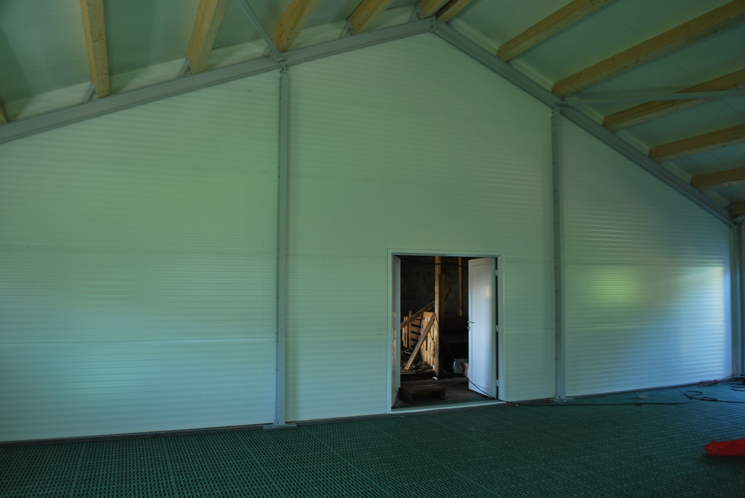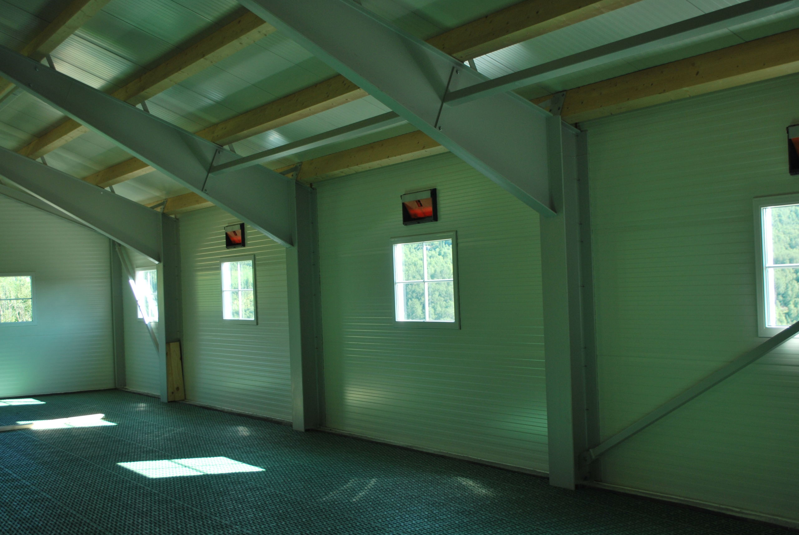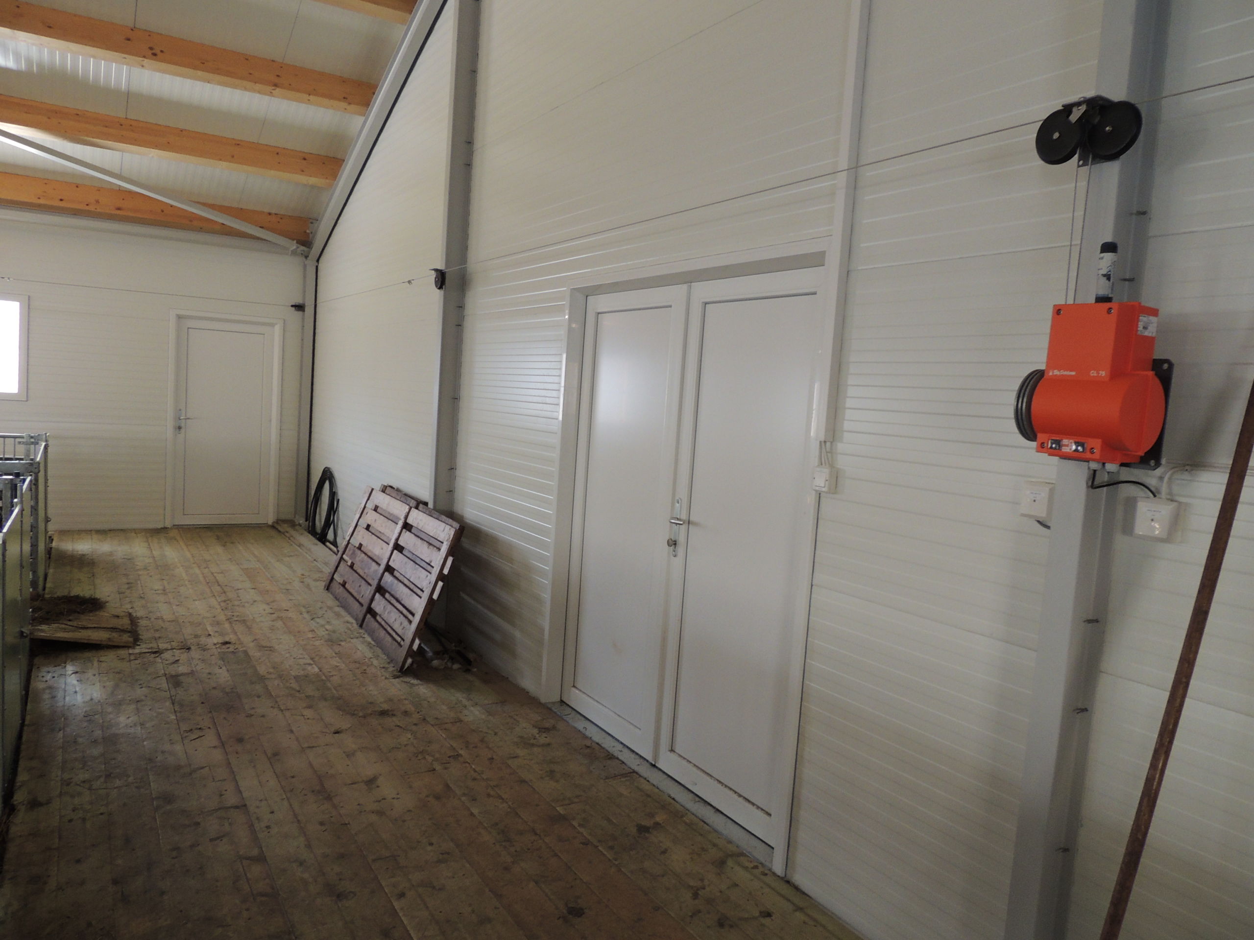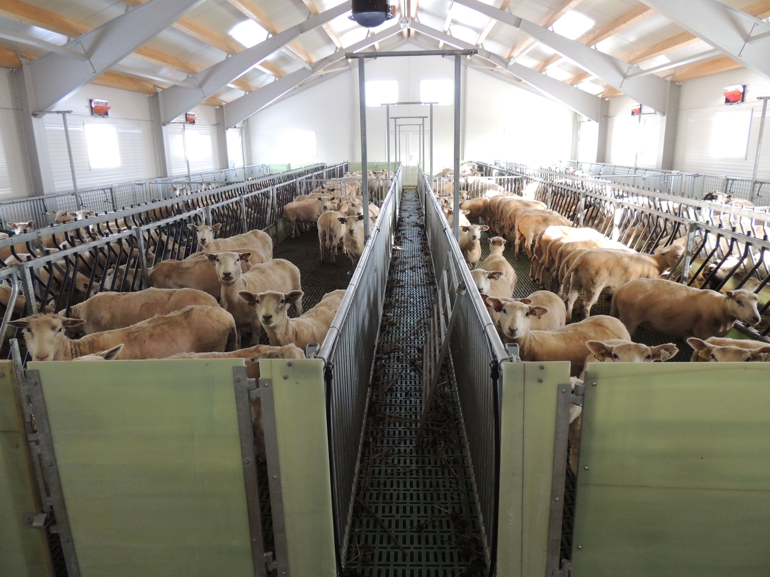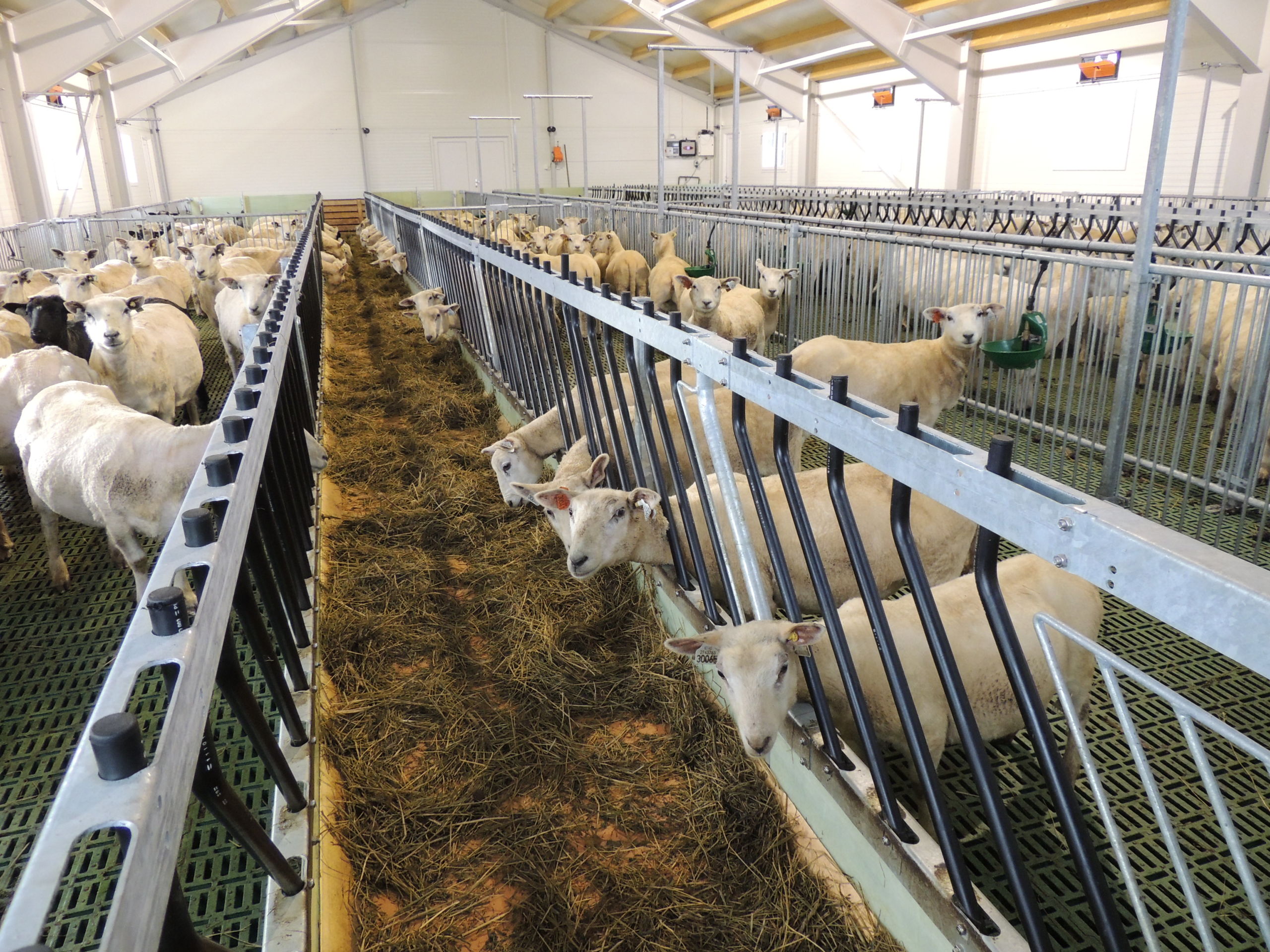 Fjøset er med stålkonstruksjon og sandwich, og er bygget over kjeller. Det er lagt Mik Stepper plastrister på stålbæring med 5 meters spenn. Det er valgt lammesikker front med glassfiber mot fôrbrett, og bingeskillene er både tette glassfiberskiller og med stående spiler. Vi har også levert Big Dutchman ventilasjon.