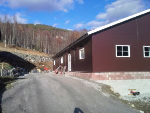 Bygget er oppført med stålbuer og sandwich elementer, og er planlagt for ca 180 v.f. sau. Det er kjeller til bløtgjødsel, og plastrister over hele arealet. Det benyttes stålbæring, med 5m spenn. Lammesikre fronter, og innredning fra Jyden samt tette plastskiller fra Paneltech. Ventilasjon fra Big Dutchman, og Agrilight belysning.