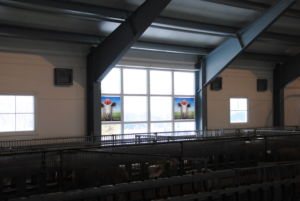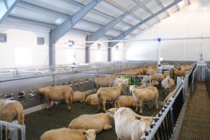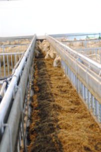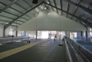 Drivganger rundt hele fjøset, samt i midten sørger for god dyreflyt. De originale MIK Stepper plastristene med sklisikre knotter ligger på bæringer à 5 meter. Tre rullende fôrbrett er montert. Seks av bingene er utstyrt med kraftfôrautomat. For sortering og veiing har Rønn og Rudi valgt helautomatisk vekt fra Fjøssystemer.