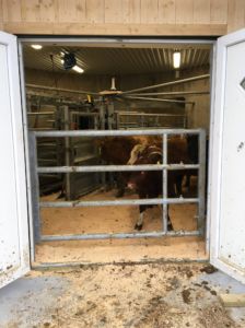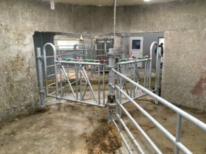 Fjøssystemer Sør har levert all innredning, behandlingsboks og Tru-Test vektutstyr. Sorteringsanlegget med drivgrind og trygge arbeidsområder er tilpasset siloen på 6 m i diameter. Behandlingsboks med justerbar bredde gjør at veiing, klipping og behandling går som en lek. Oksene blir så sendt videre til riktig binge, enten i dette fjøset eller ut på dyrehenger og over i annet oppfôringsfjøs.