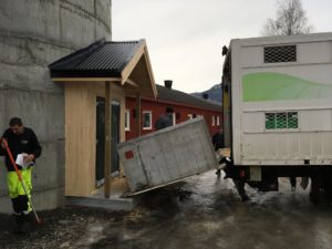 De gamle tårnsiloene fikk isolert himling og den ene er innredet med to sjukebinger på djupstrø og den andre som mottaks- og sorteringsavdeling.