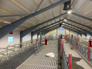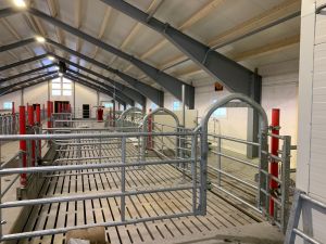 Vi har levert innredning fra Jourdain,spalter fra Suding, ventilasjon fra Big Dutchmann og gummimatter fra Kraibourg.