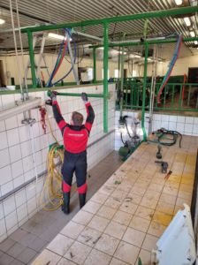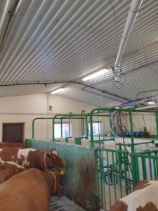 På en dag har våre dyktige montører og teknikere fra Fjøssystemer Vest og Lelycenter Nærbø demontert melkestall, gjort klart for ny Lely A5 melkerobot, installert alt utstyret og startet opp med innmelking av besetningen til Torleif og Gerd Kaldheim!