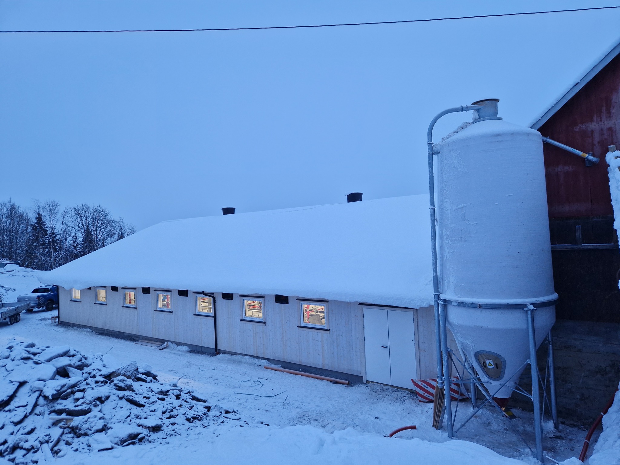 Fjøset er et påbygg med ren mjølkeku-del, totalt 30 liggebåser, og der kalv/ungdyr skal være i eksisterende bygg. Bygget er oppført av Fjøssystemer Bygg i reisverk med takstoler.