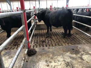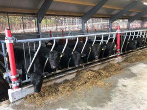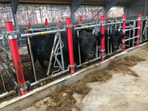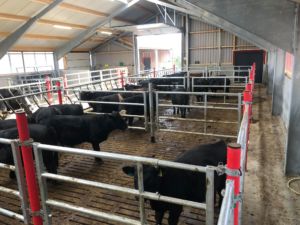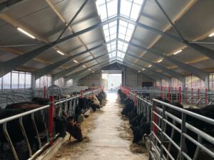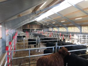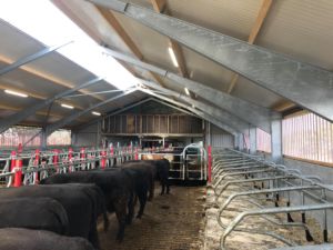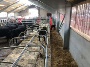 Fjøset huser ca 30 mordyr med full fremfôring av okser.