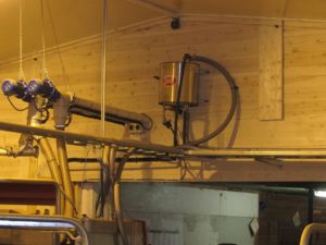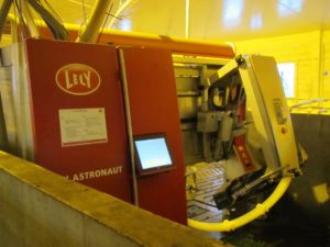 Forkjøler – en forkjøler er montert ved roboten. Dette systemet kjøler melka ned før transport ut til tankrommet. Det er drikkevann som brukes til nedkjøling, og dermed blir også drikkevannet varmet opp. Hurtig nedkjøling av melk, gjør den mer robust i forhold til mekanisk påvirkning, og har således en svært positiv effekt på frie fettsyrer. Det gir også mye mindre varmeutvikling på tankrommet.