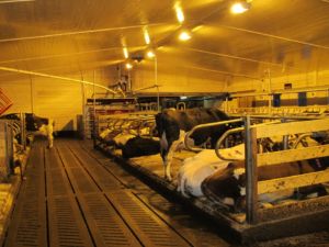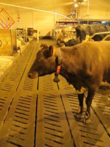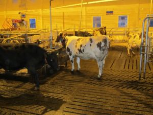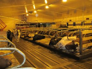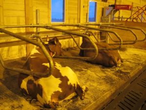 Det er Jourdain innredning, skråspalter som holdes rene av en Lely Discovery, Wingflex liggebåsmatter og Big Dutchman mekanisk ventilasjon.