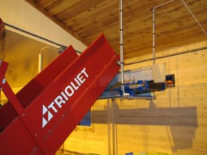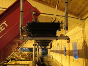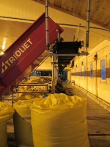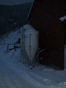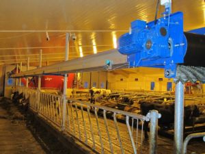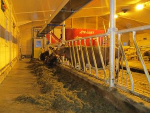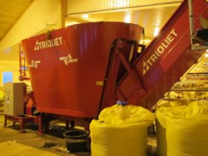 En fullfôrmikser i fôrsentralen mater en Rollax takutlegger.