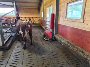 Fjøssystemer Midt-Norge leverer Lely A5 melkerobot, Lely Vector, Lely skraperobot, spalteplank fra Souding, Jourdan innredning og Secco naturlig ventilasjon.
