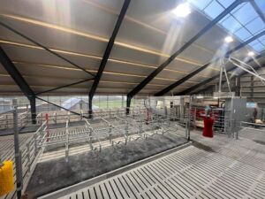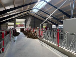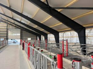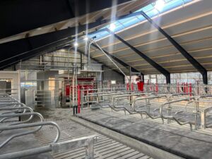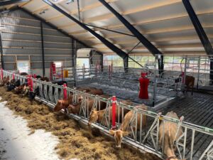 Av utstyr har vi blant annet levert Lely A4, Discovery 90SW, madrasser fra Promat, innredning fra Jourdain og Patura, Wopas stolper, ku-børster, drikkeutstyr og Agrilight belysning. I tillegg er kjeller klargjort for luftomrøring.