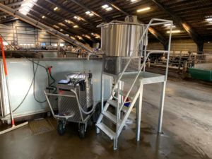 Stig Gammelsrød i Rygge har nylig oppgradert med Melkeledning 2 fra Lelyroboten, 200 ltr. kjøletank for kalvemelk og melketaxi. Fjøssystemer har fått tilvirket et flott stativ for kjøletanken med tilhørende trapp i sklisikker utførelse. Dette for renhold og inspeksjon oppe i tanken. Kuer som er satt av til kalvemelk, pumpes automatisk over på kalvetanken og kjøles ned. Melkeledning 2 har og automatisk vask ifbm hovedvask på roboten.