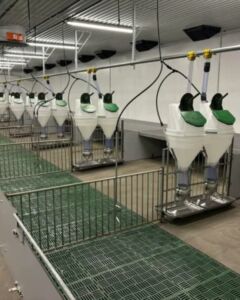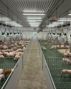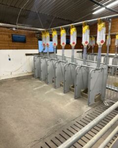 Fjøssystemer Midt-Norge har levert og montert utgjødslingsanlegg, binger, ventilasjon, fôring, vannopplegg og gulvvarme.