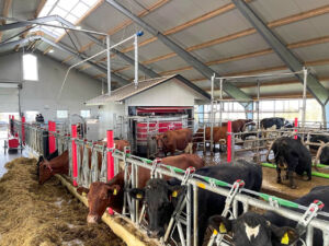 Fjøset har naturlig ventilasjon med Arntjern gardinsystem og Agrilight belysning.