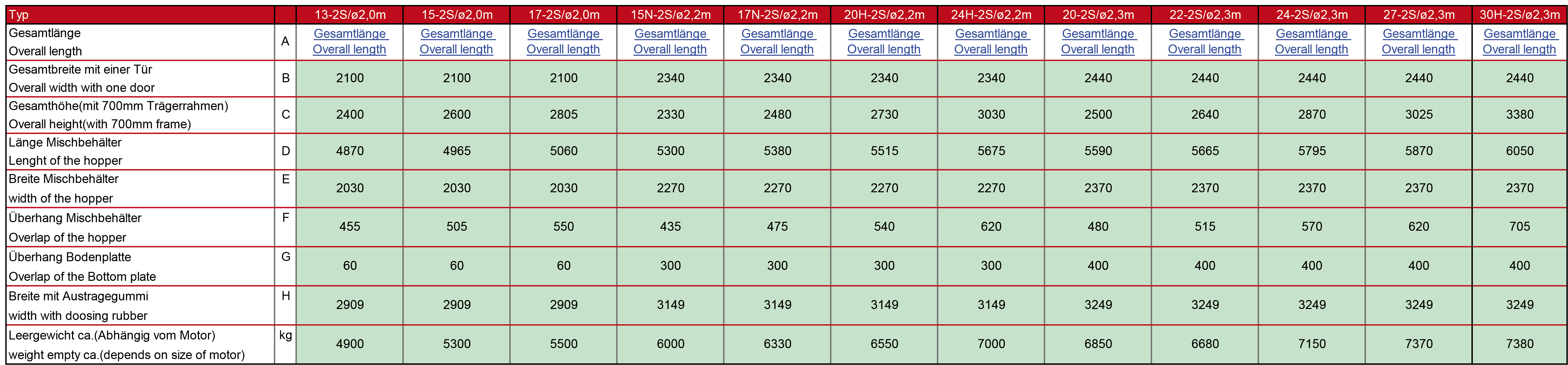 Modellutvalget spenner seg fra 6,5 m3 til 30 m3. Se også FS Kompaktmikser